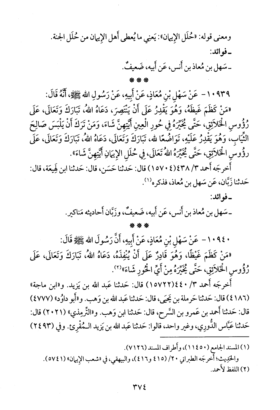 أخرجه أحمد (١٥٧٠٤) قال: حدثنا حسن، قال: حدثنا ابن لَهِيعة، قال: حدثنا زبان، عن سهل بن معاذ، فذكره (¬١).