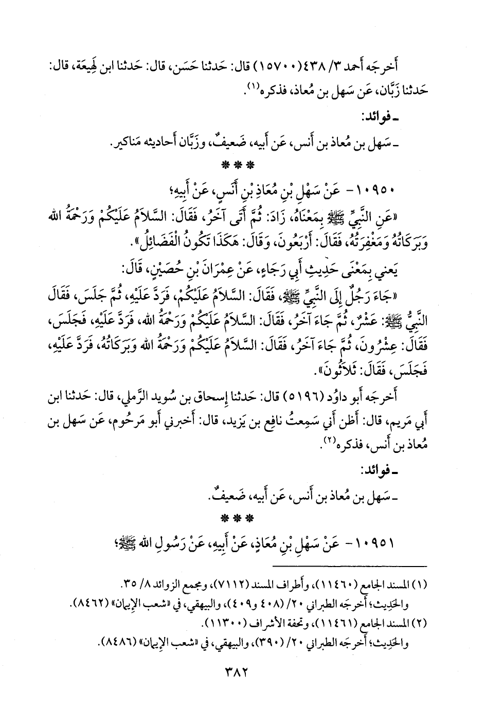 - قلنا إِسناده ضعيفٌ؛ لضعف سهل بن معاذ، وزبان بن فائد. انظر فوائد الحديث رقم (١٠٩٢٨).