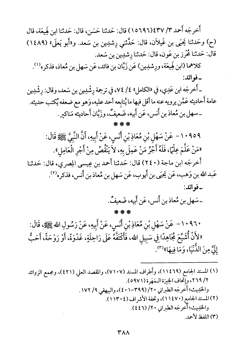 - قلنا إِسناده ضعيفٌ؛ لضعف سهل بن معاذ، وزبان بن فائد. انظر فوائد الحديث رقم (١٠٩٢٨).