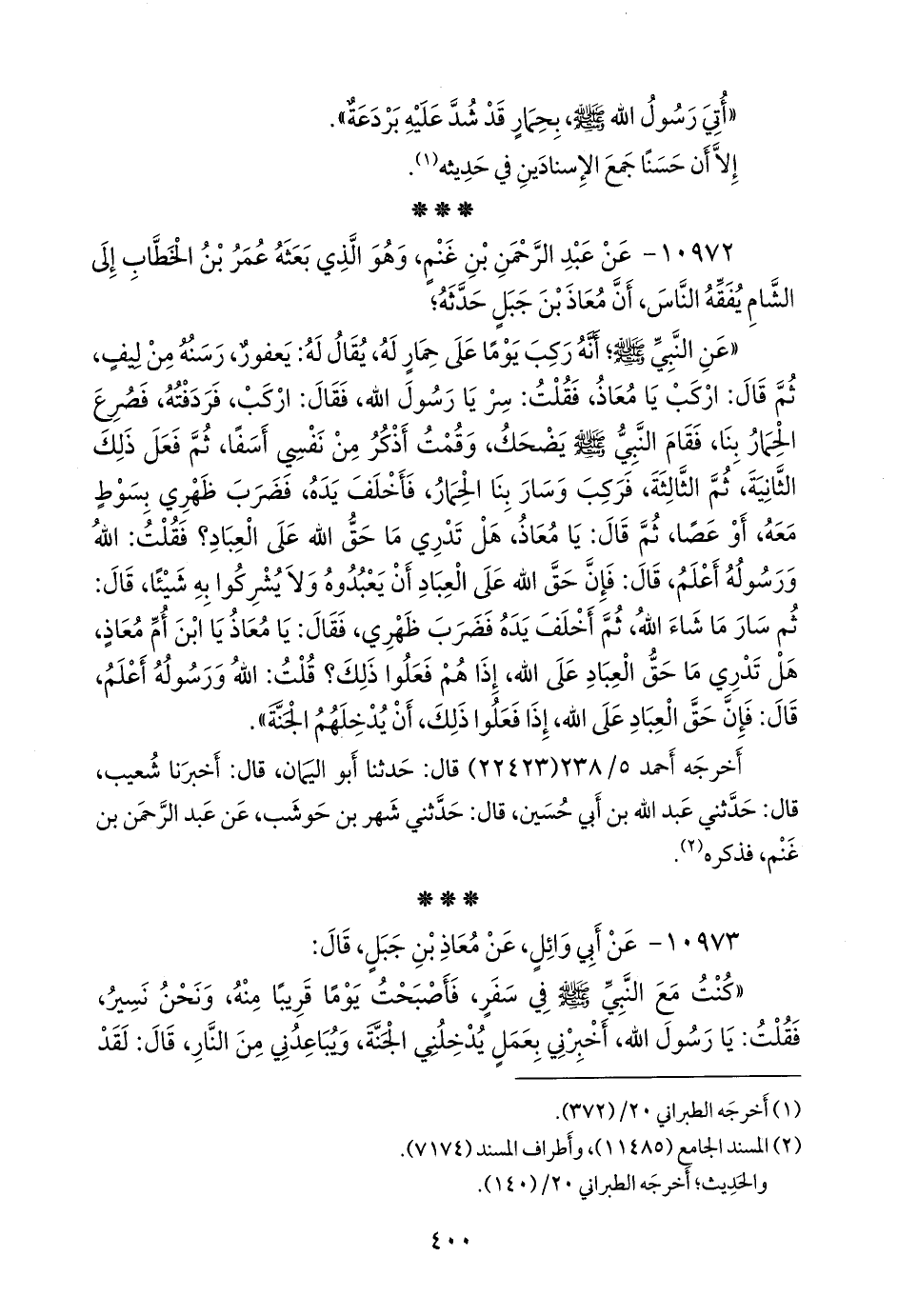 ١٠٩٧٢ - عن عبد الرَّحمَن بن غَنْم، وهو الذي بعثه عمر بن الخطاب إلى الشام يفقه الناس، أن معاذ بن جبل حدثه؛