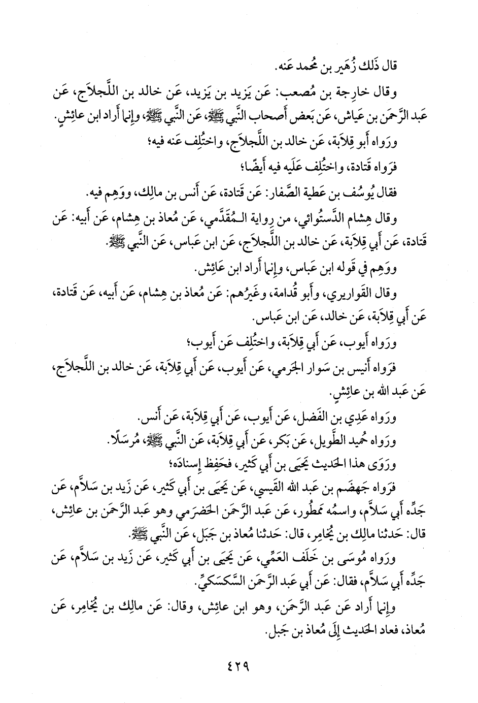 وقال القواريري، وأَبو قدامة، وغيرهم: عن معاذ بن هشام، عن أبيه، عن قتادة، عن أبي قلابة، عن خالد، عن ابن عباس.