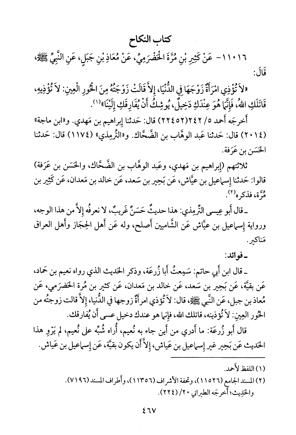 ثلاثتهم (إبراهيم بن مهدي، وعبد الوَهَّاب بن الضحاك، والحسن بن عرفة) عن إسماعيل بن عياش، عن بَحِير بن سعد، عن خالد بن مَعدان، عن كثير بن مُرَّة، فذكره (¬٢).
