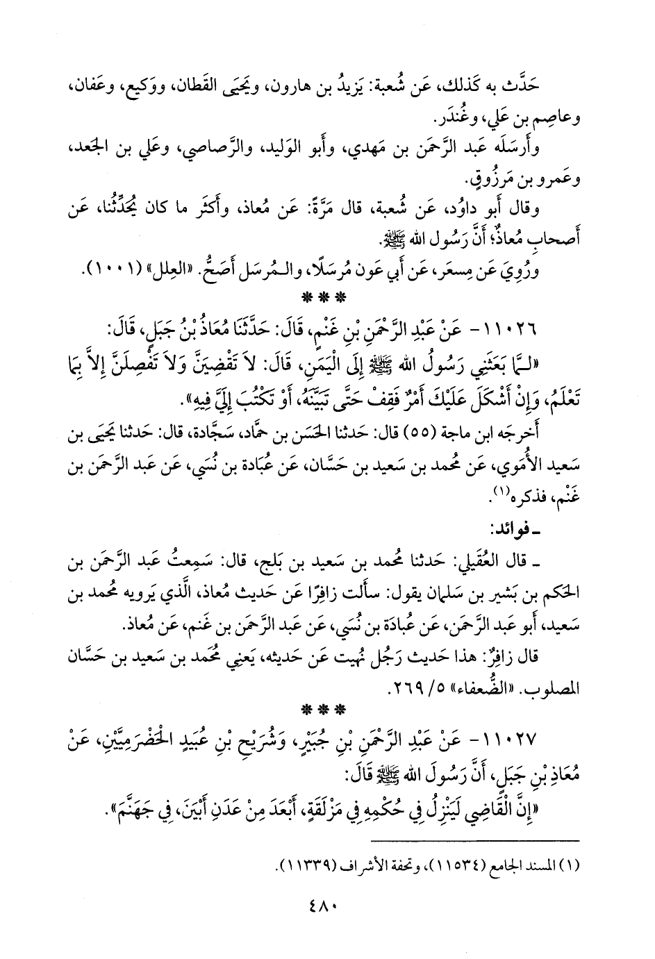 ١١٠٢٧ - عن عبد الرَّحمَن بن جبير، وشريح بن عُبيد الحضرميين، عن معاذ بن جبل، أن رسول الله صَلى الله عَليه وسَلم قال: