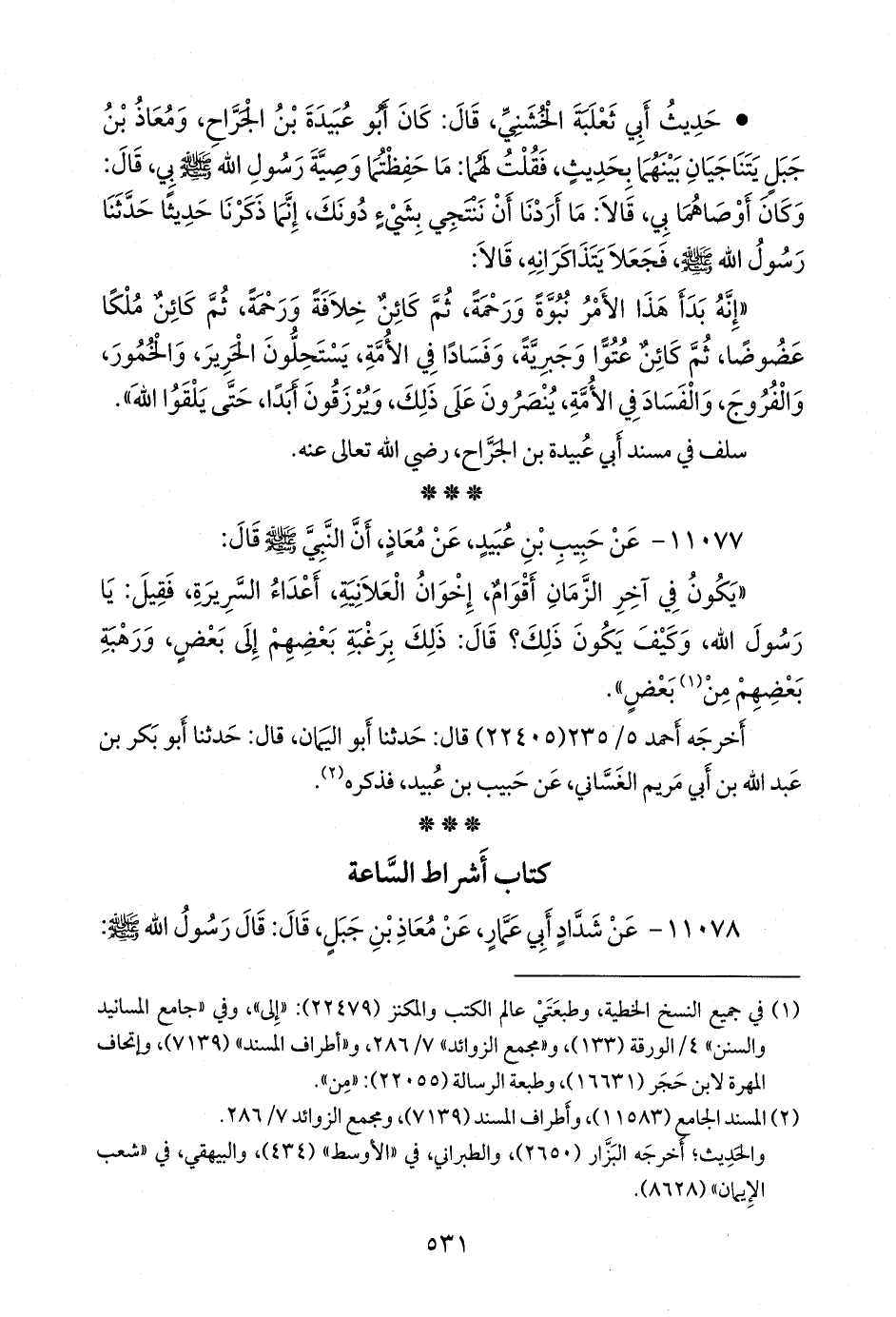 ١١٠٧٧ - عن حبيب بن عبيد، عن معاذ، أن النبي صَلى الله عَليه وسَلم قال: