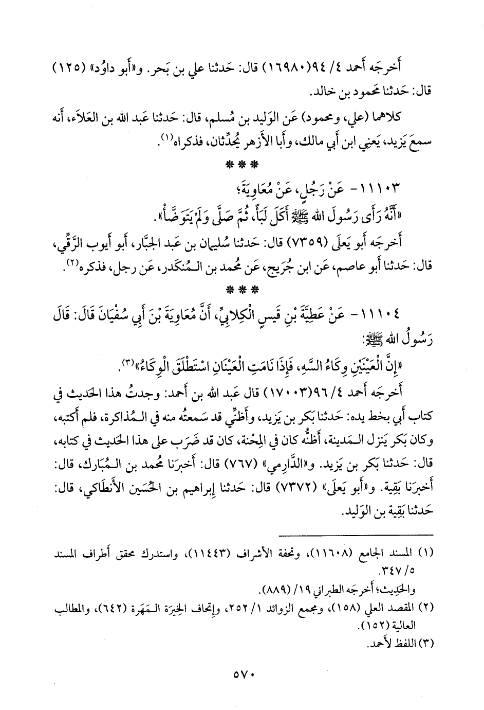 (¬٢) المسند الجامع (١١٦٠٩)، وأطراف المسند (٧٢٩١)، والمقصد العَلي (١٤٣)، ومَجمَع الزوائد ١/ ٢٤٧، وإتحاف الخِيرَة المَهَرة (٦١٤).