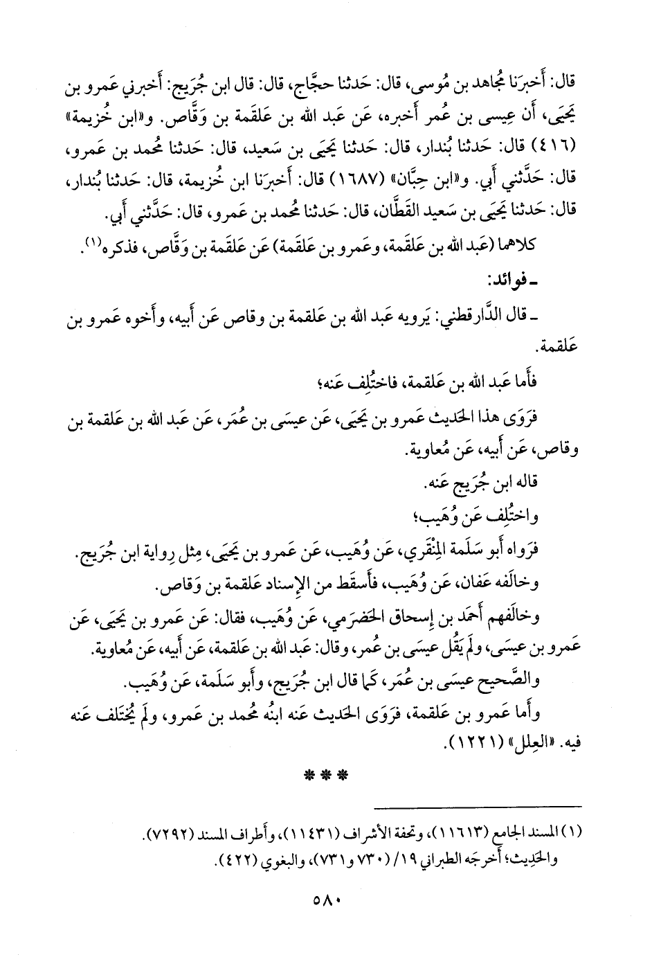- قال الدارقُطني: يرويه عبد الله بن علقمة بن وقاص عن أبيه، وأخوه عَمرو بن علقمة.