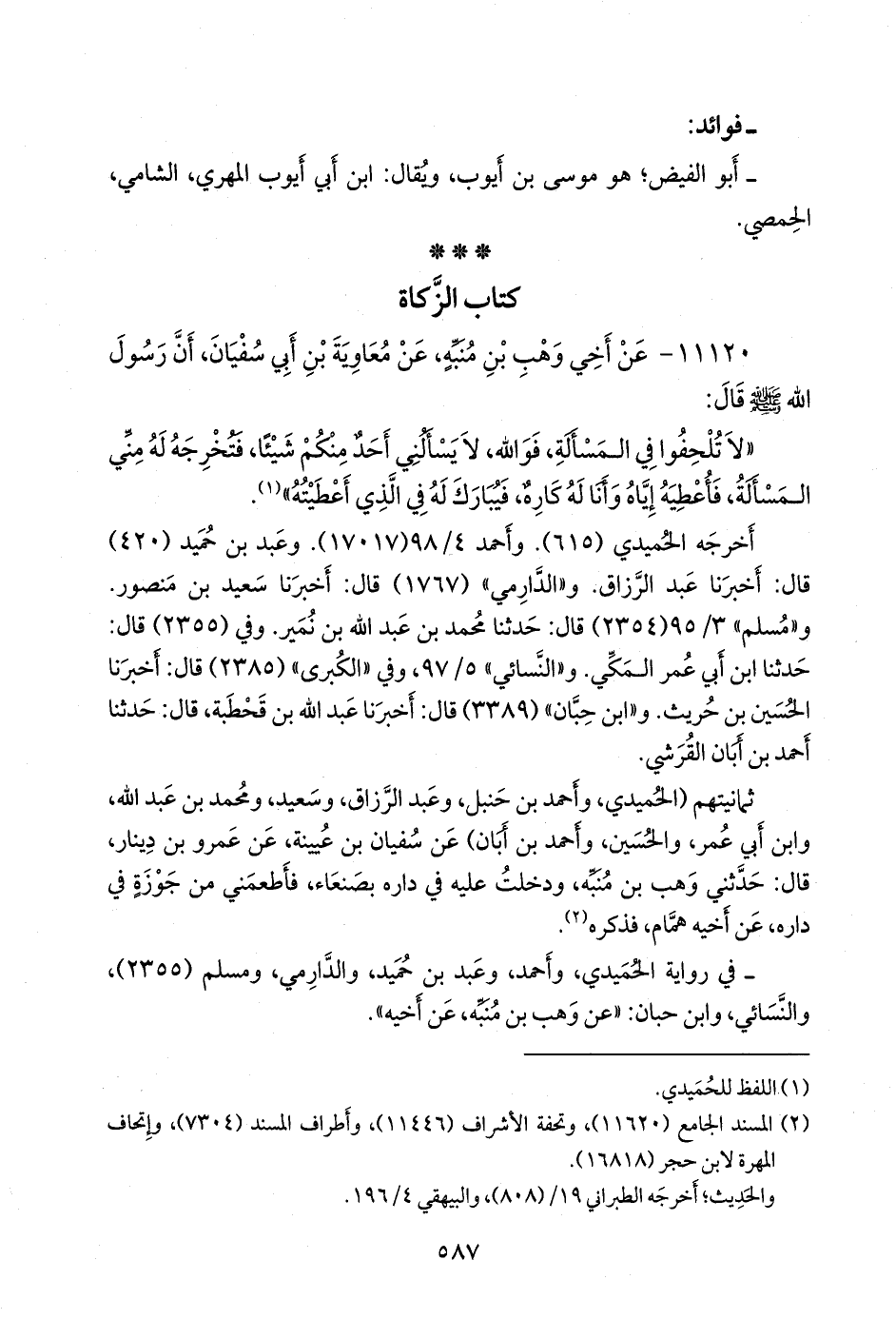 (¬٢) المسند الجامع (١١٦٢٠)، وتحفة الأشراف (١١٤٤٦)، وأطراف المسند (٧٣٠٤)، وإتحاف المهرة لابن حجر (١٦٨١٨).