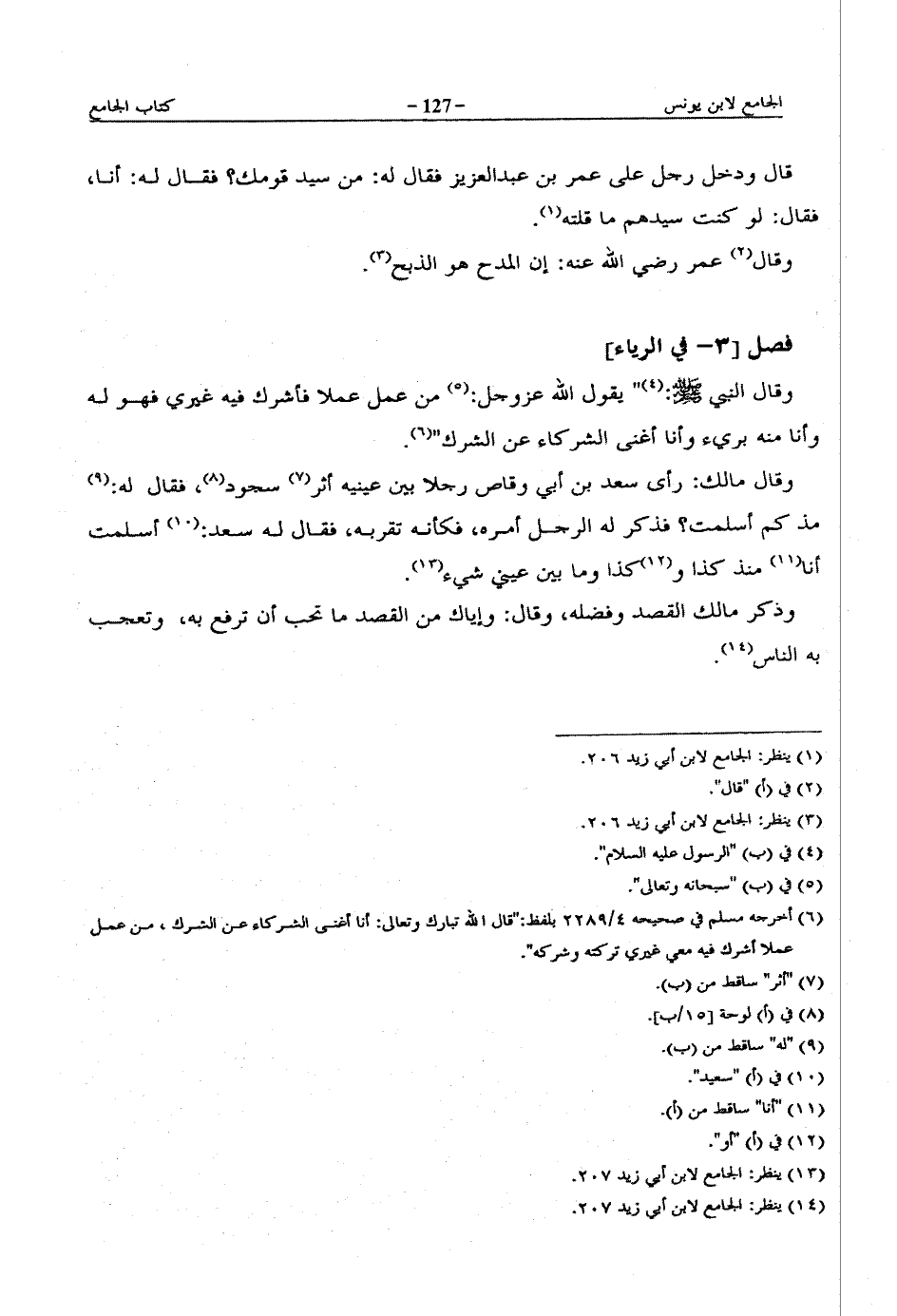 وذكر مالك القصد وفضله، وقال: وإياك من القصد ما تحب أن ترفع به، وتعجب به الناس.
