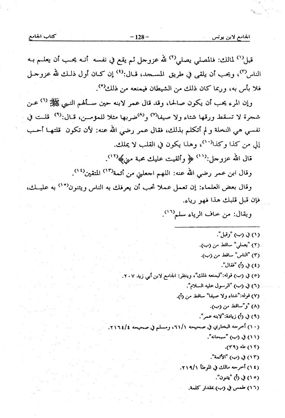 قيل لمالك: فالمصلي يصلي لله عز وجل ثم يقع في نفسه أنه يحب أن يعلم به الناس، ويحب أن يلقى في طريق المسجد، قال: إن كان أول ذلك لله عز وجل فلا بأس به، وربما كان ذلك من الشيطان فيمنعه من ذلك.
