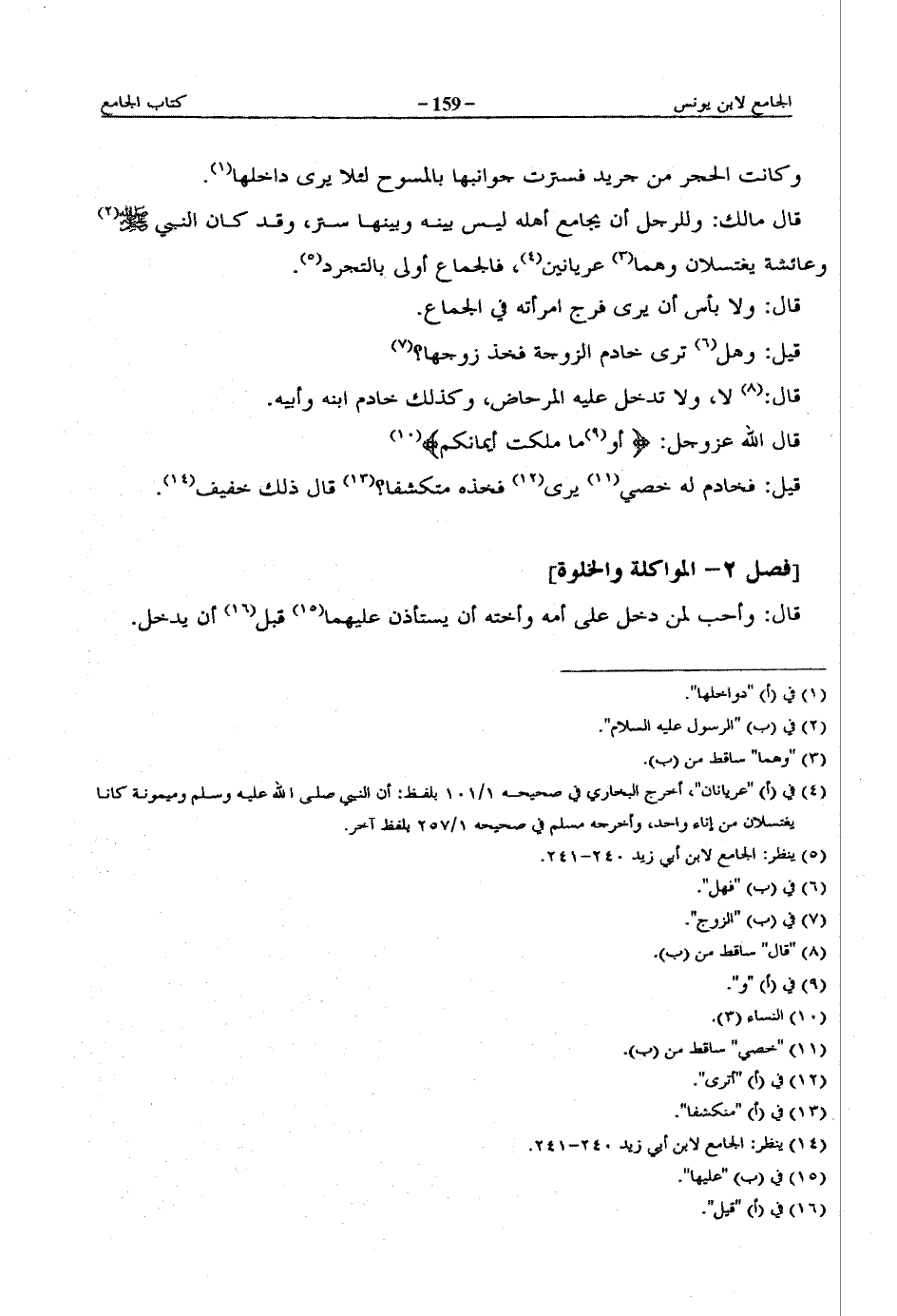 قال مالك: وللرجل أن يجامع أهله ليس بينه وبينها ستر، وقد كان النبي صلى الله عليه وسلم وعائشة يغتسلان وهما عرايانين، فالجماع أولى بالتجرد.