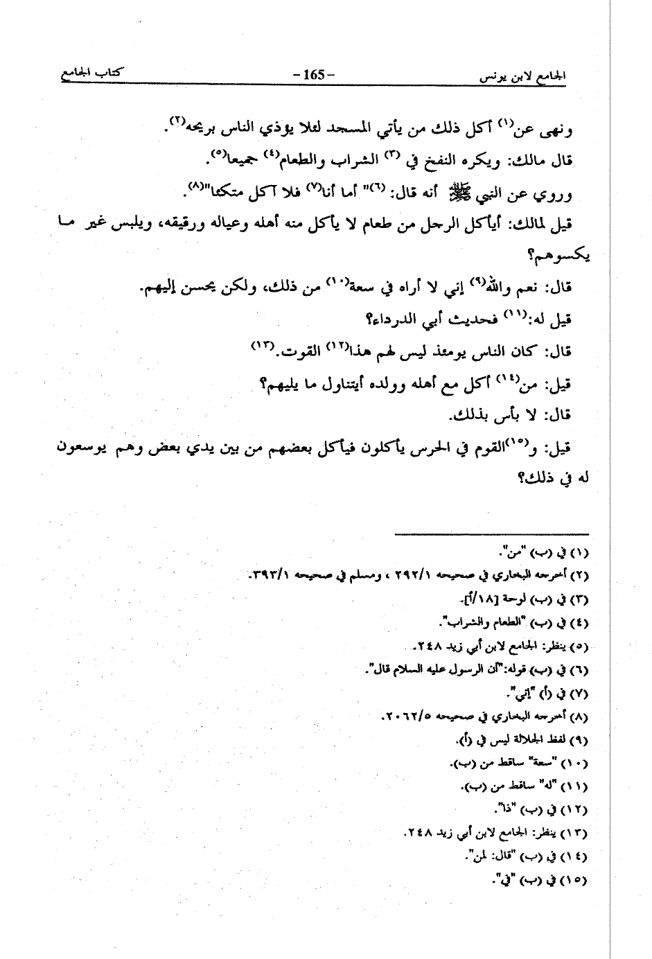 قيل لمالك: أيأكل الرجل من طعام لا يأكل منه أهله وعياله ورقيقه، ويلبس غير ما يكسوهم؟
