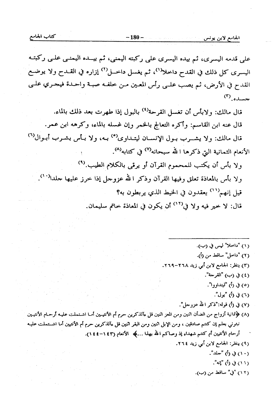 قال مالك: ولا يشرب بول الإنسان ليتداوى به، ولا بأس بشرب أبوال الأنعام الثمانية التي ذكرها الله سبحانه في كتابه.