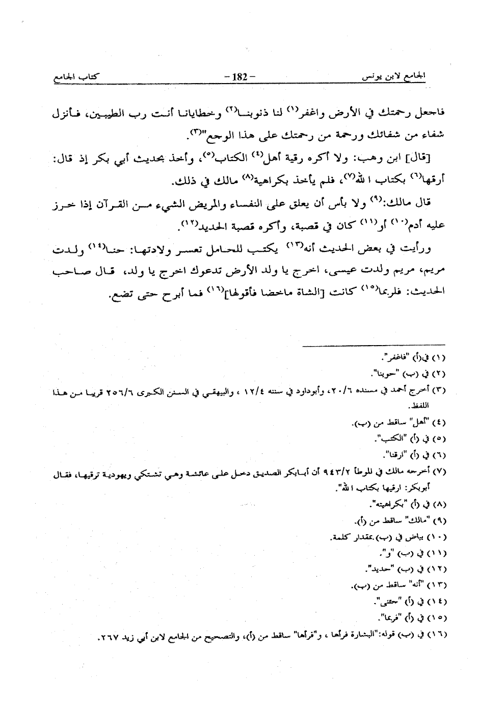 [قال] ابن وهب: ولا أكره رقية أهل الكتاب، وأخذ بحديث أبي بكر إذ قال: أرقها بكتاب الله، فلم يأخذ بكراهية مالك في ذلك.