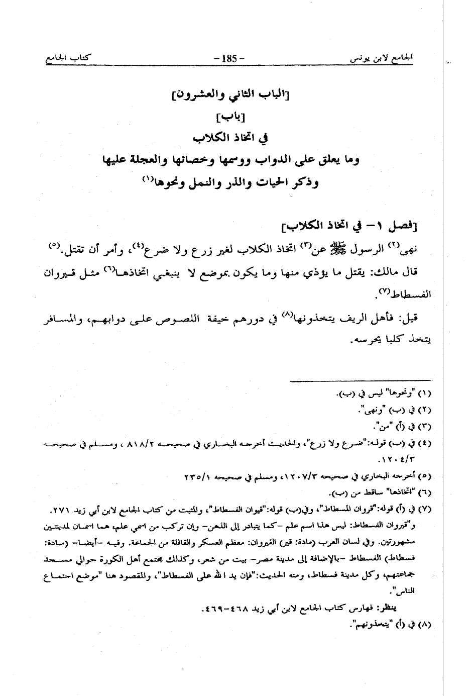 قال مالك: يقتل ما يؤذي منها وما يكون بموضع لا ينبغي اتخاذها مثل قيروان الفسطاط.