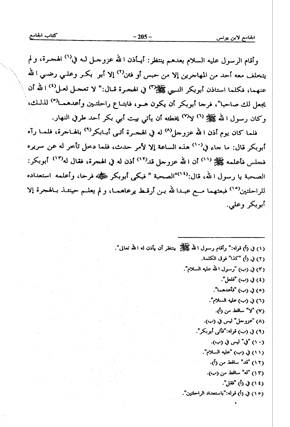 فلما كان يوم أذن الله عز وجل له في الهجرة أتى أبا بكر بالهاجرة، فلما رآه أبو بكر قال: ما جاء في هذه الساعة إلا لأمر حدث، فلما دخل تأخر له عن سريره فجلس فأعلمه صلى الله عليه وسلم أن الله عز وجل قد أذن له في الهجرة، فقال له أبو بكر: الصحبة يا رسول الله، قال: "الصحبة" فبكى أبو بكر رضي الله عنه فرحا، وأعلمه استعداده للراحلتين فبعثهما مع عبد الله بن أرقط يرعاهما، ولم يعلم حينئذ بالهجرة إلا أبو بكر وعلي.