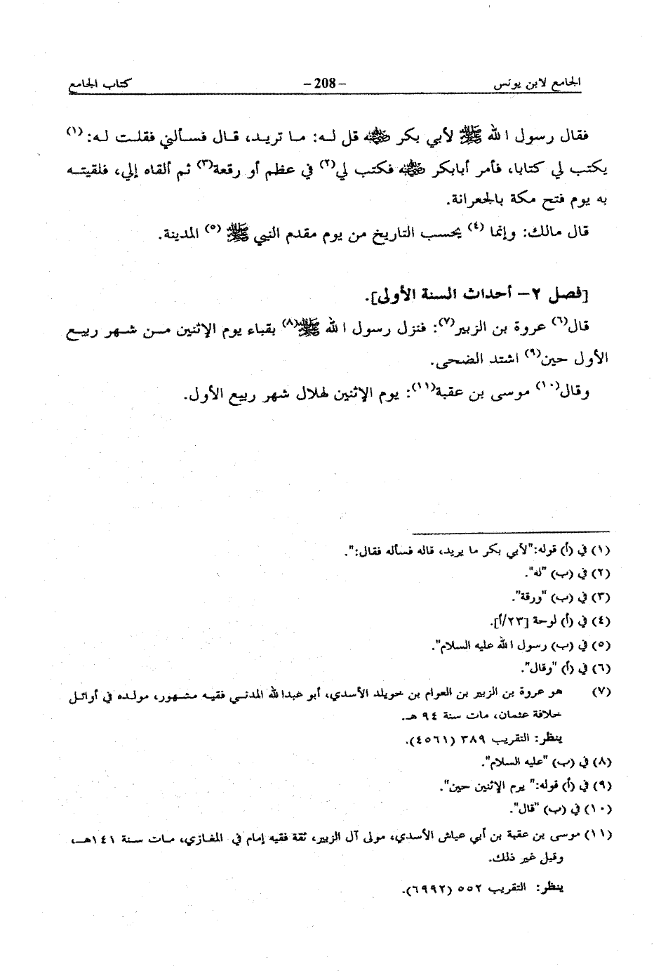 قال مالك: وإنما يحسب التاريخ من يوم مقدم النبي صلى الله عليه وسلم المدينة.