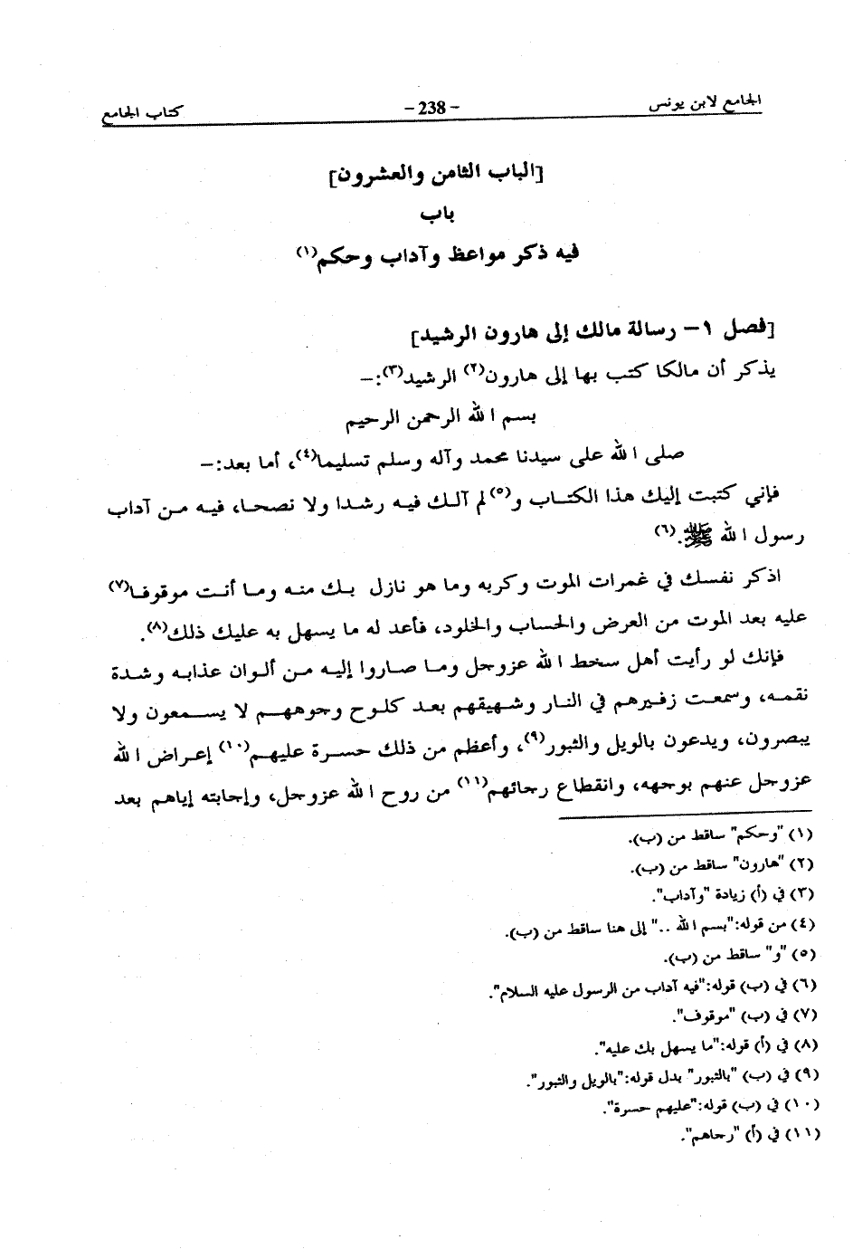 [فصل 1 - رسالة مالك إلى هارون الرشيد]