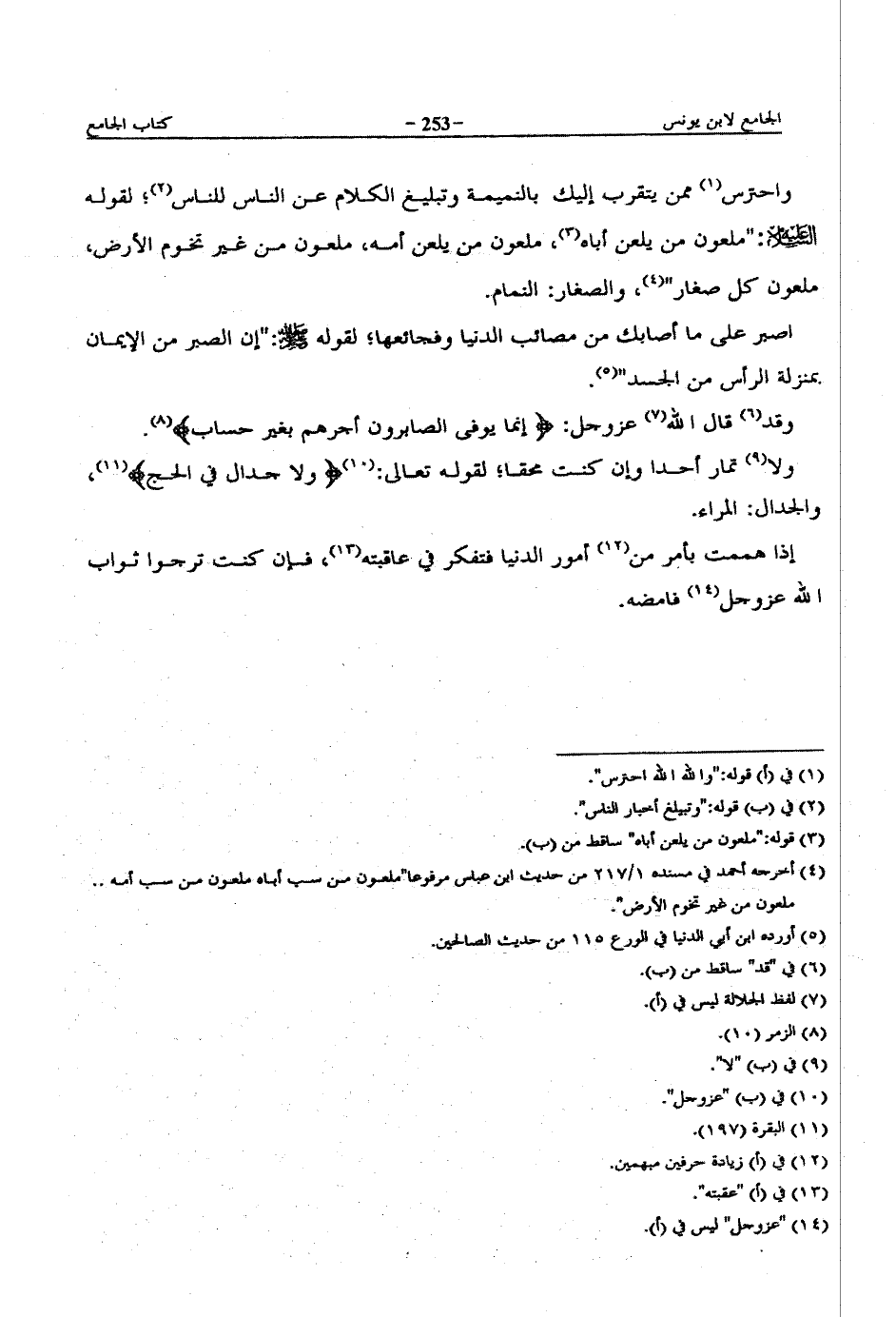 واحترس ممن يتقرب إليك بالنميمة وتبليغ الكلام عن الناس للناس؛ لقوله عليه السلام: "ملعون من يلعن أباه، ملعون من يلعن أمه، ملعون من غير تخوم الأرض، ملعون كل صغار"، والصغار: النمام.