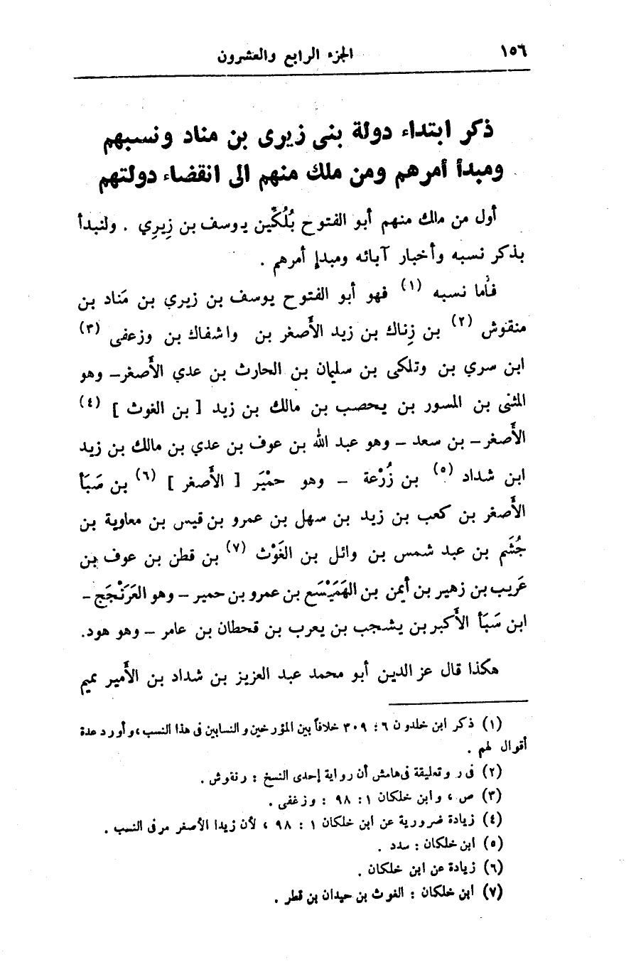 فأما نسبه «1» فهو أبو الفتوح يوسف بن زيرى بن مناد بن منقوش «2» بن زناك بن زيد الأصغر بن واشفاك بن وزعفى «3» ابن سرى بن وتلكى بن سليمان بن الحارث بن عدى الأصغر- وهو المثنى بن المسور بن يحصب بن مالك بن زيد [بن الغوث] «4» الأصغر- بن سعد- وهو عبد الله بن عوف بن عدى بن مالك بن زيد ابن شداد «5» بن زرعة- وهو حمير [الأصغر] «6» بن سبأ الأصغر بن كعب بن زيد بن سهل بن عمرو بن قيس بن معاوية بن جشم بن عبد شمس بن وائل بن الغوث «7» بن قطن بن عوف بن عريب بن زهير بن أيمن بن الهميسع بن عمرو بن حمير- وهو العرنجج- ابن سبأ الأكبر بن يشجب بن يعرب بن قحطان بن عامر- وهو هود.