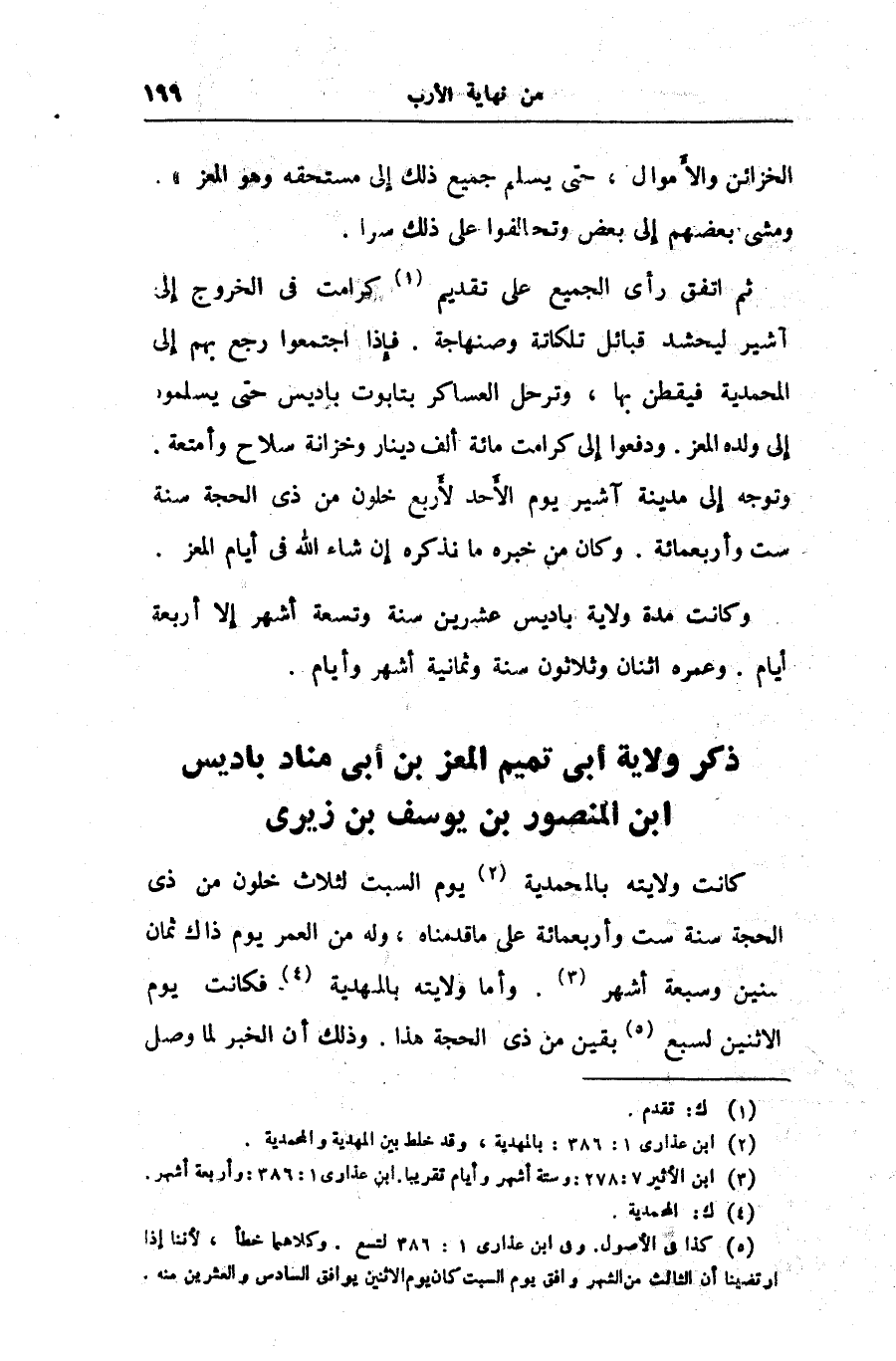 ذكر ولاية أبى تميم المعز بن أبى مناد باديس ابن المنصور بن يوسف بن زيرى