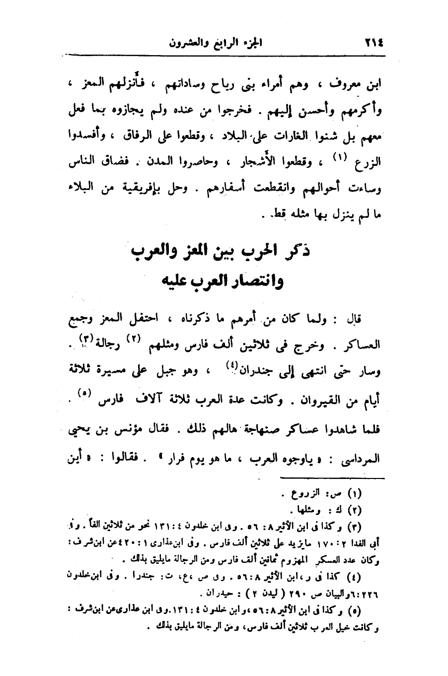 ذكر الحرب بين المعز والعرب وانتصار العرب عليه