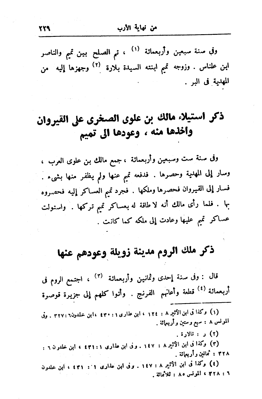 وفى سنة ست وسبعين وأربعمائة، جمع مالك بن علوى العرب، وسار إلى المهدية وحصرها. فدفعه تميم عنها ولم يظفر منها بشىء.