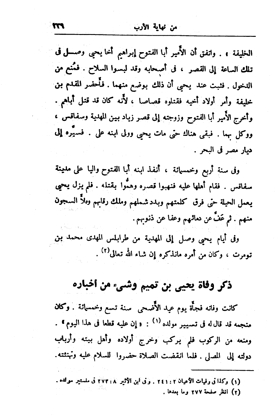 ذكر وفاة يحيى بن تميم وشىء من أخباره