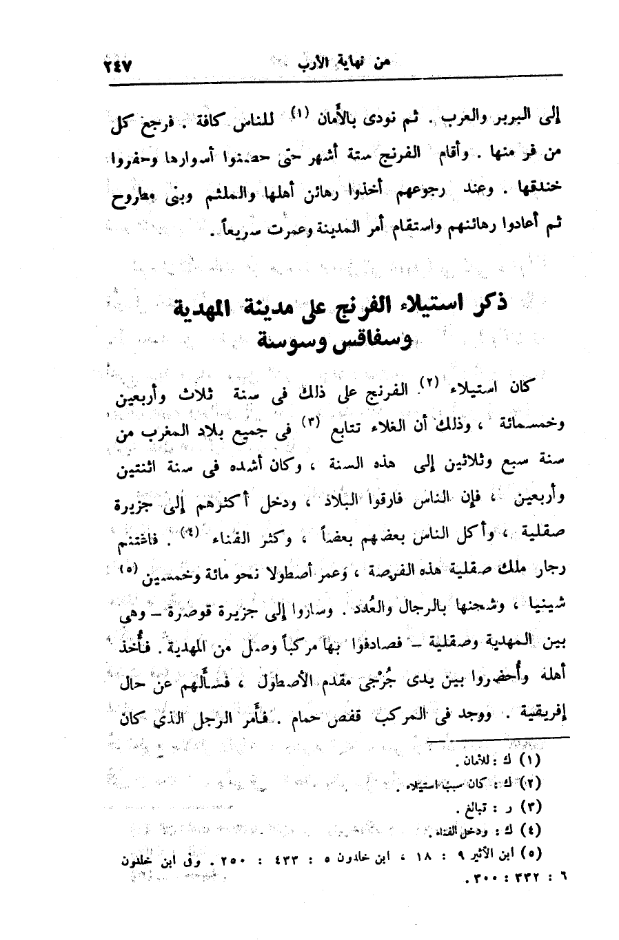 ذكر استيلاء الفرنج على مدينة المهدية وسفاقس وسوسة