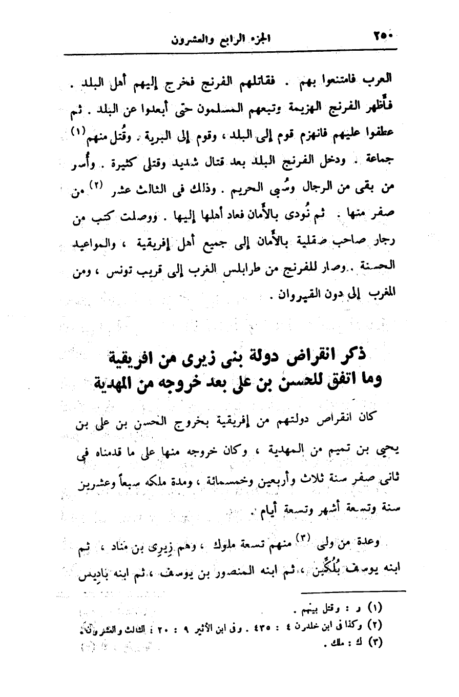 ذكر انقراض دولة بنى زيرى من افريقية وما اتفق للحسن بن على بعد خروجه من المهدية