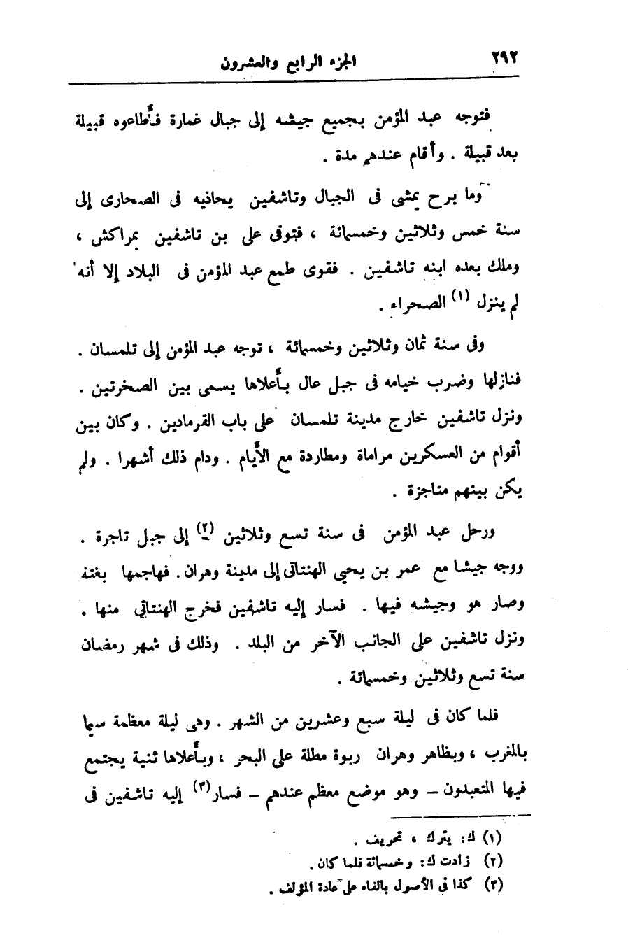 ونزل تاشفين على الجانب الآخر من البلد. وذلك فى شهر رمضان سنة تسع وثلاثين وخمسمائة.