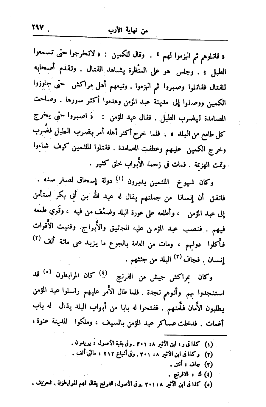 وكان بمراكش جيش من الفرنج «4» كان المرابطون «5» قد استنجدوا بهم وأتوهم نجدة. فلما طال الأمر عليهم راسلوا عبد المؤمن يطلبون الأمان فأمنهم. ففتحوا له بابا من أبواب البلد يقال له باب أغمات. فدخلت عساكر عبد المؤمن بالسيف، وملكوا المدينة عنوة،