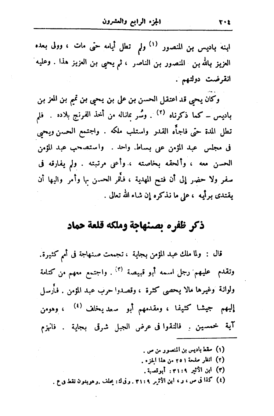 قال: ولما ملك عبد المؤمن بجاية، تجمعت صنهاجة فى أمم كثيرة.