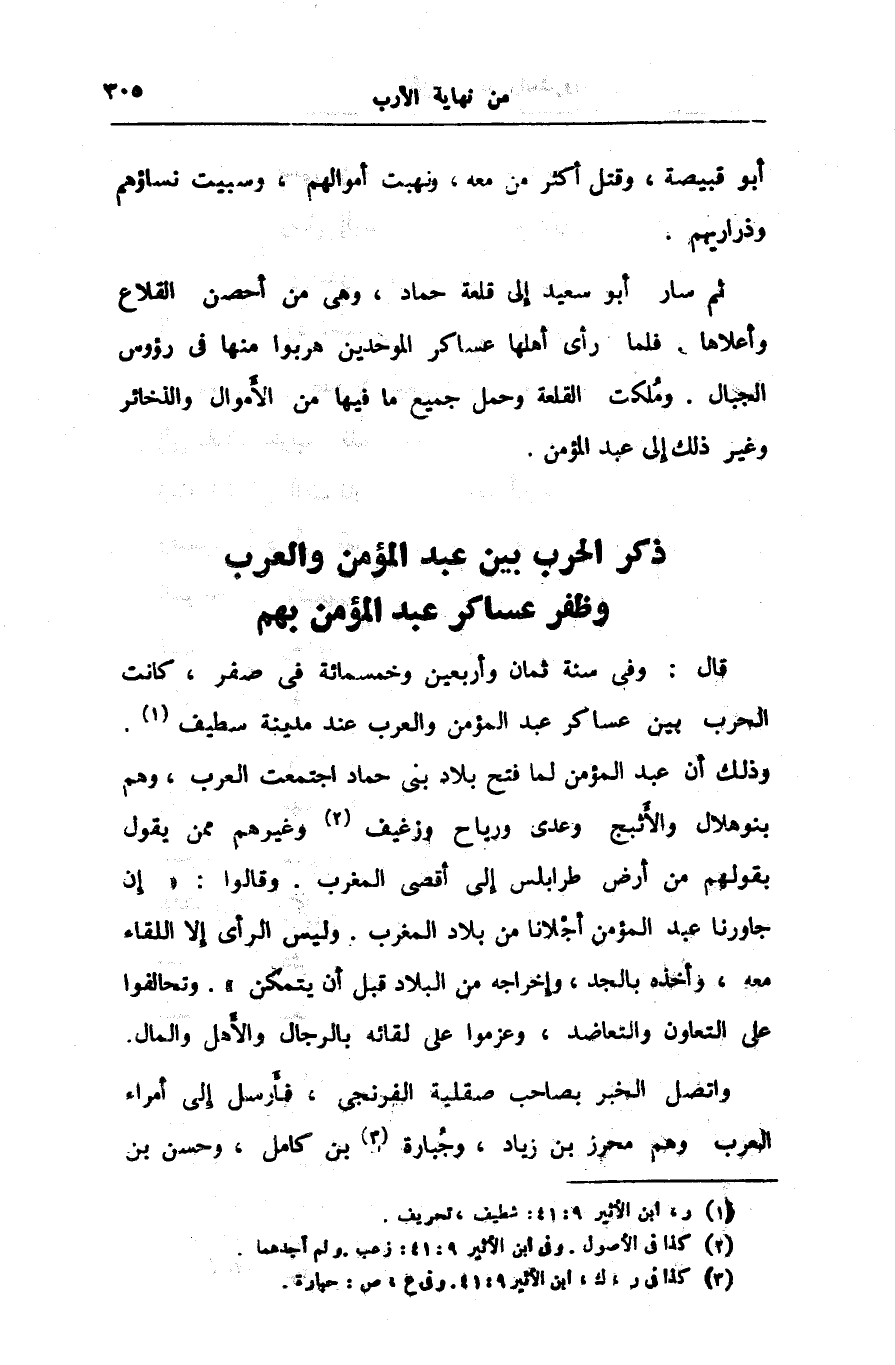 ذكر الحرب بين عبد المؤمن والعرب وظفر عساكر عبد المؤمن بهم
