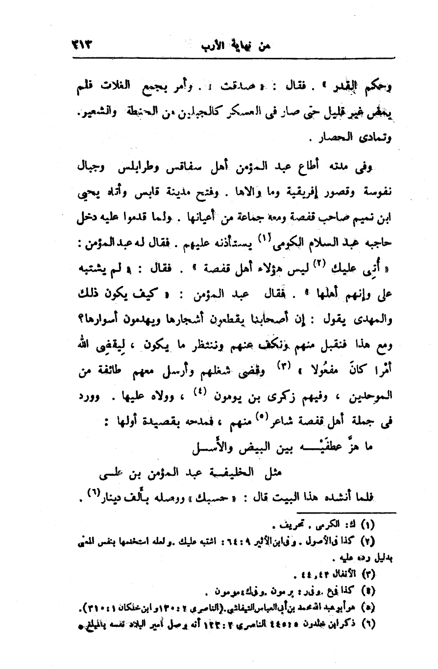 ومع هذا فنقبل منهم ونكف عنهم وننتظر ما يكون، ليقضى الله أمرا كان مفعولا» «3» وقضى شغلهم وأرسل معهم طائفة من الموحدين، وفيهم زكرى بن يومون «4» ، وولاه عليها. وورد فى جملة أهل قفصة شاعر «5» منهم، فمدحه بقصيدة أولها: