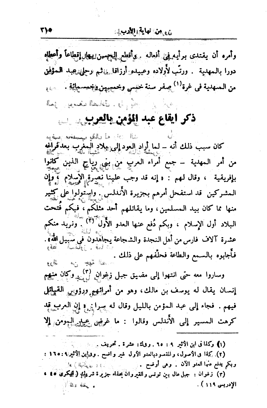 كان سبب ذلك أنه- لما أراد العود إلى بلاد المغرب بعد فراغه من أمر المهدية- جمع أمراء العرب من بنى رياح الذين كانوا بإفريقية، وقال لهم: «إنه قد وجب علينا نصرة الإسلام، وإن المشركين قد استفحل أمرهم بجزيرة الأندلس. واستولوا على كثير منها مما كان بيد المسلمين، وما يقاتلهم أحد مثلكم، فبكم فتحت البلاد أول الإسلام، وبكم دفع عنها العدو الأول «2» . ونريد منكم عشرة آلاف فارس من أهل النجدة والشجاعة يجاهدون فى سبيل الله» .