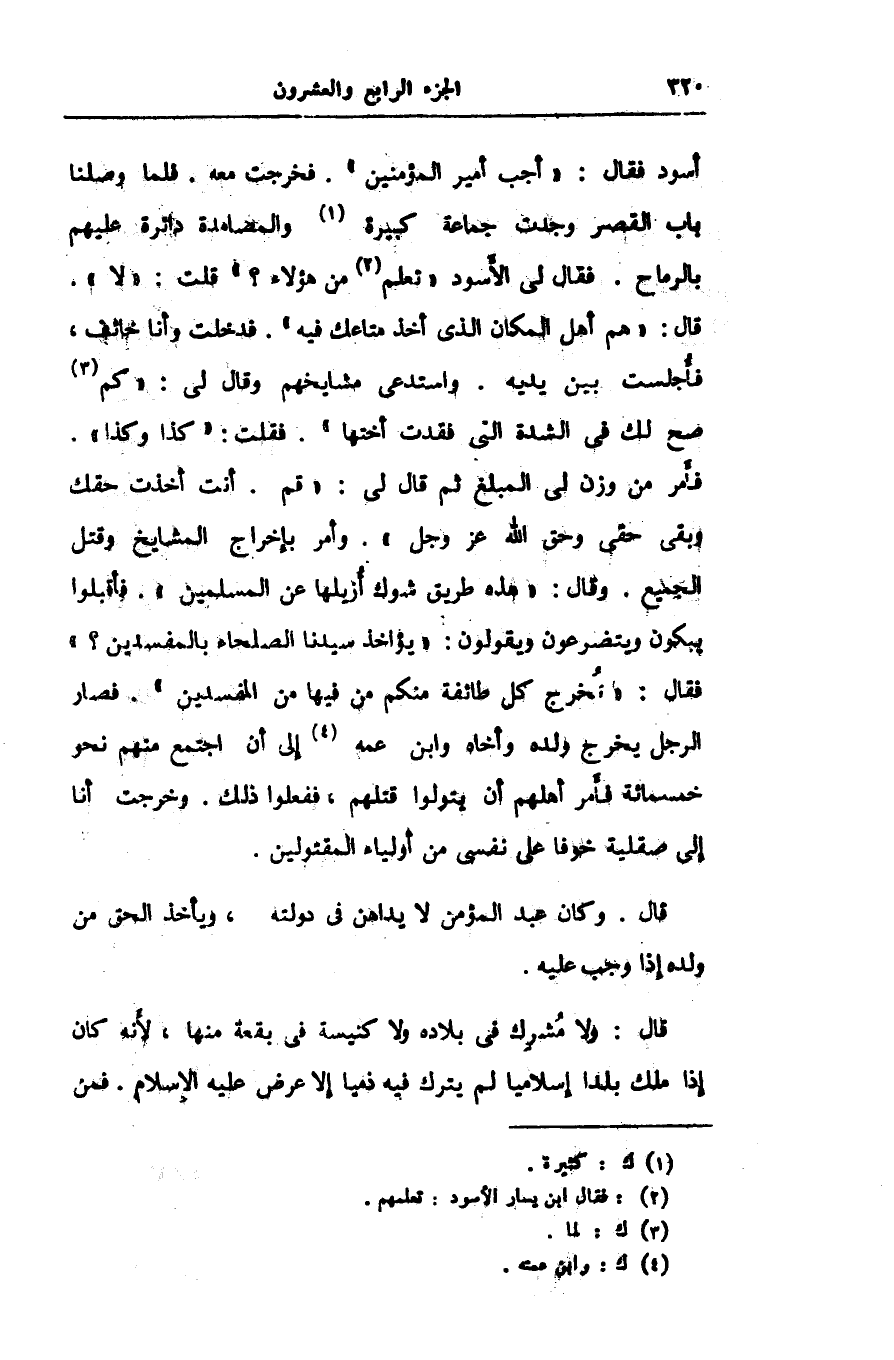 أسود فقال: «أجب أمير المؤمنين» . فخرجت معه. فلما وصلنا باب القصر وجدت جماعة كبيرة «1» والمصامدة دائرة عليهم بالرماح. فقال لى الأسود «تعلم «2» من هؤلاء؟» قلت: «لا» .