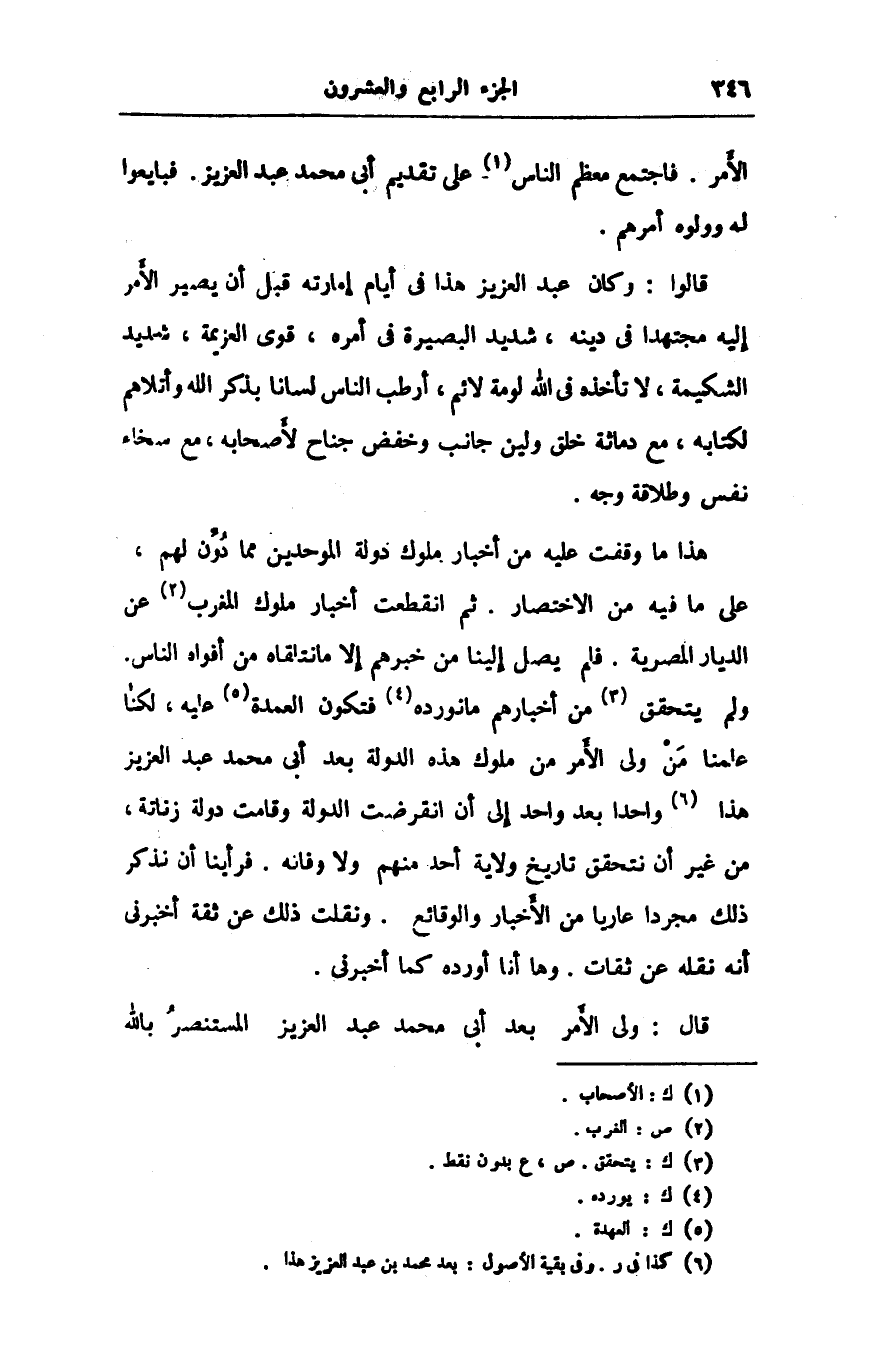 قال: ولى الأمر بعد أبى محمد عبد العزيز المستنصر بالله
