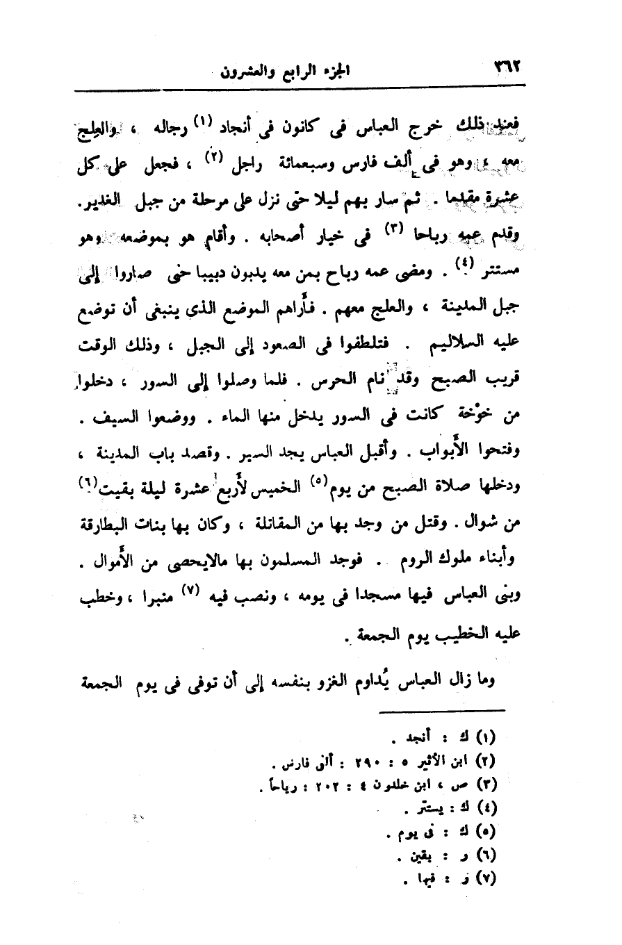 وما زال العباس يداوم الغزو بنفسه إلى أن توفى فى يوم الجمعة