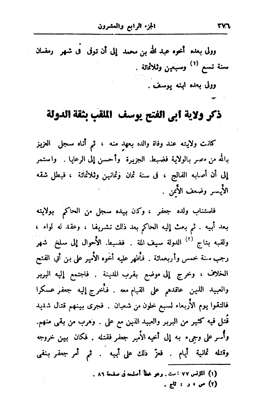 وولى بعده أخوه عبد الله بن محمد إلى أن توفى فى شهر رمضان سنة تسع «1» وسبعين وثلاثمائة.