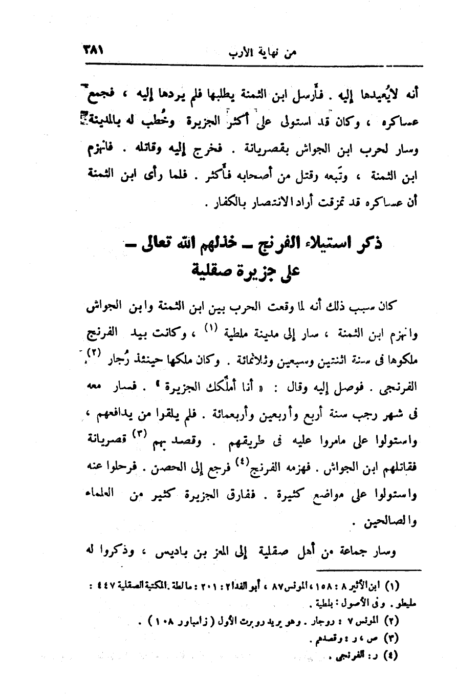 ذكر استيلاء الفرنج- خذلهم الله تعالى- على جزيرة صقلية