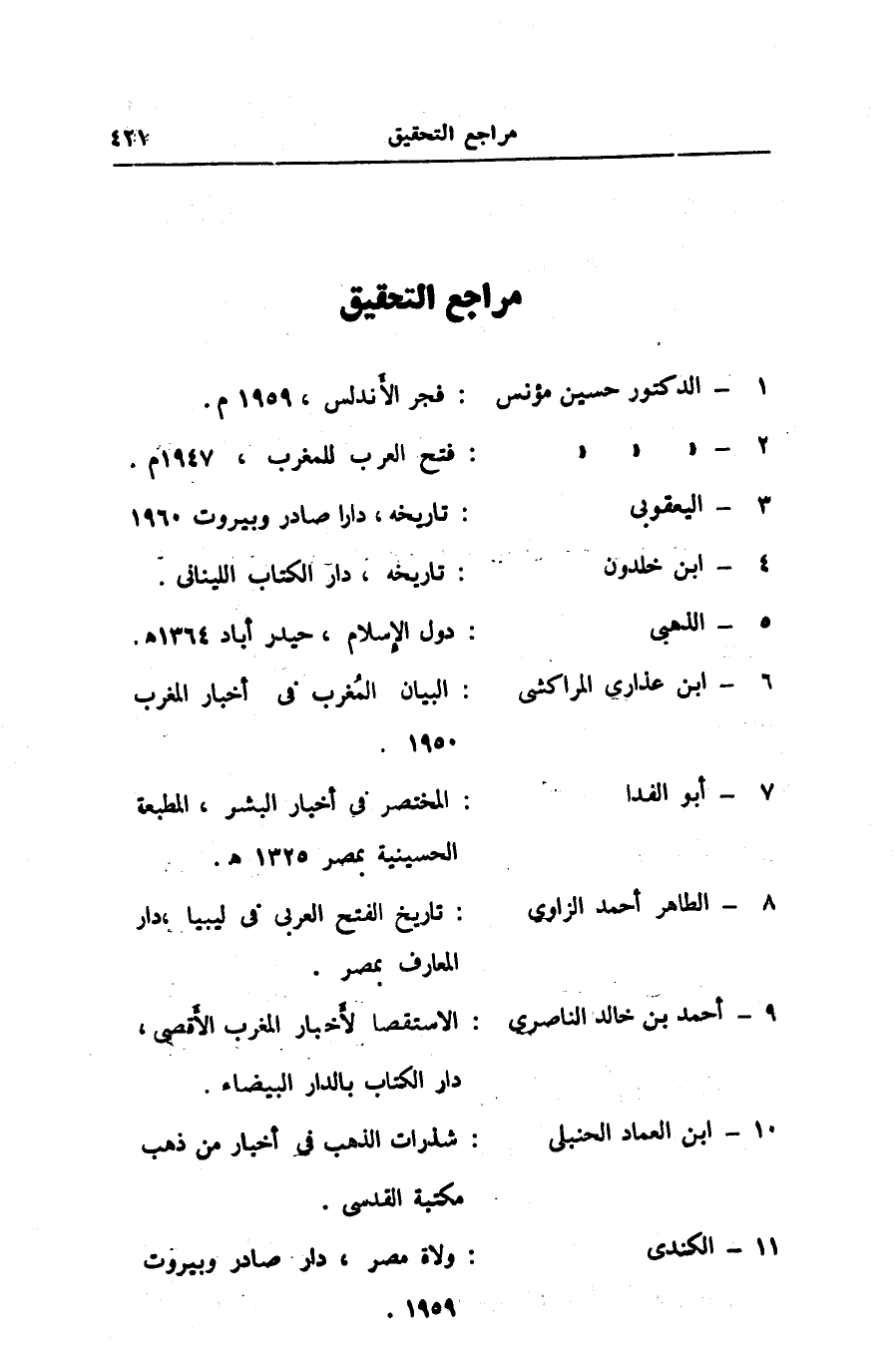 2- الدكتور حسين مؤنس: فتح العرب للمغرب، 1947 م.