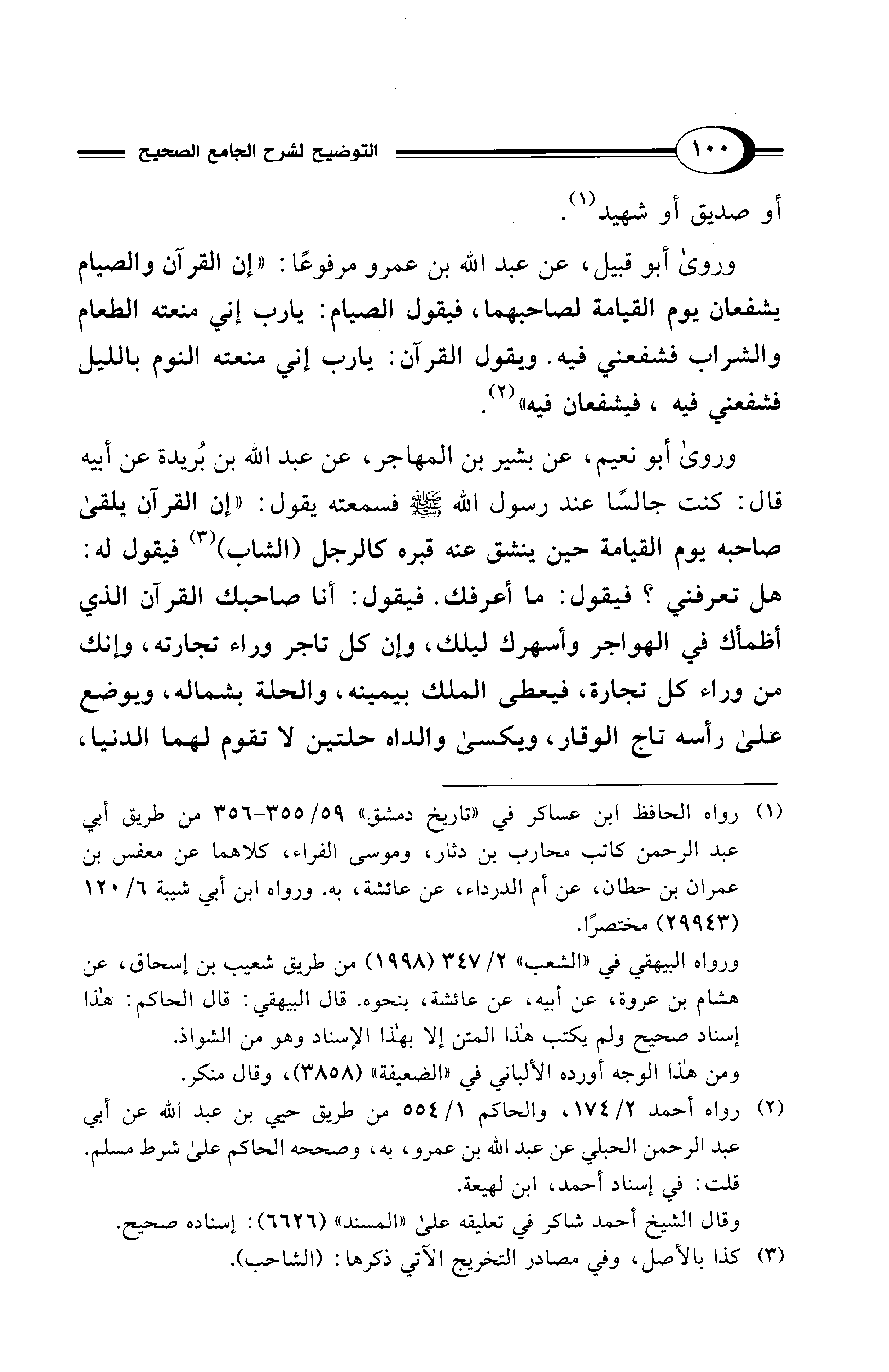 (¬3) كذا بالأصل، وفي مصادر التخريج الآتي ذكرها: (الشاحب).