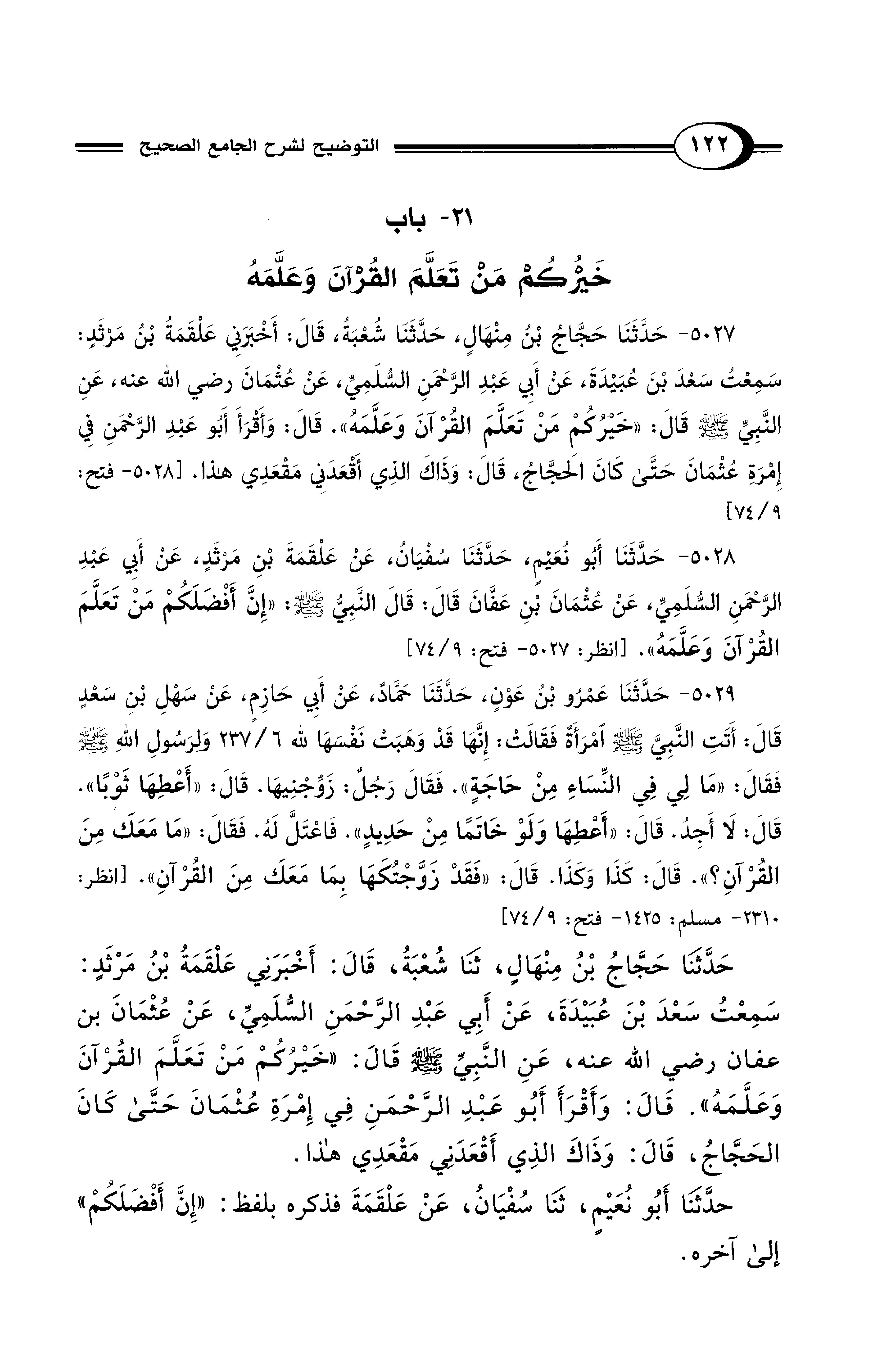 21 - باب خَيْرُكُمْ مَنْ تَعَلَّمَ القُرْآنَ وَعَلَّمَهُ