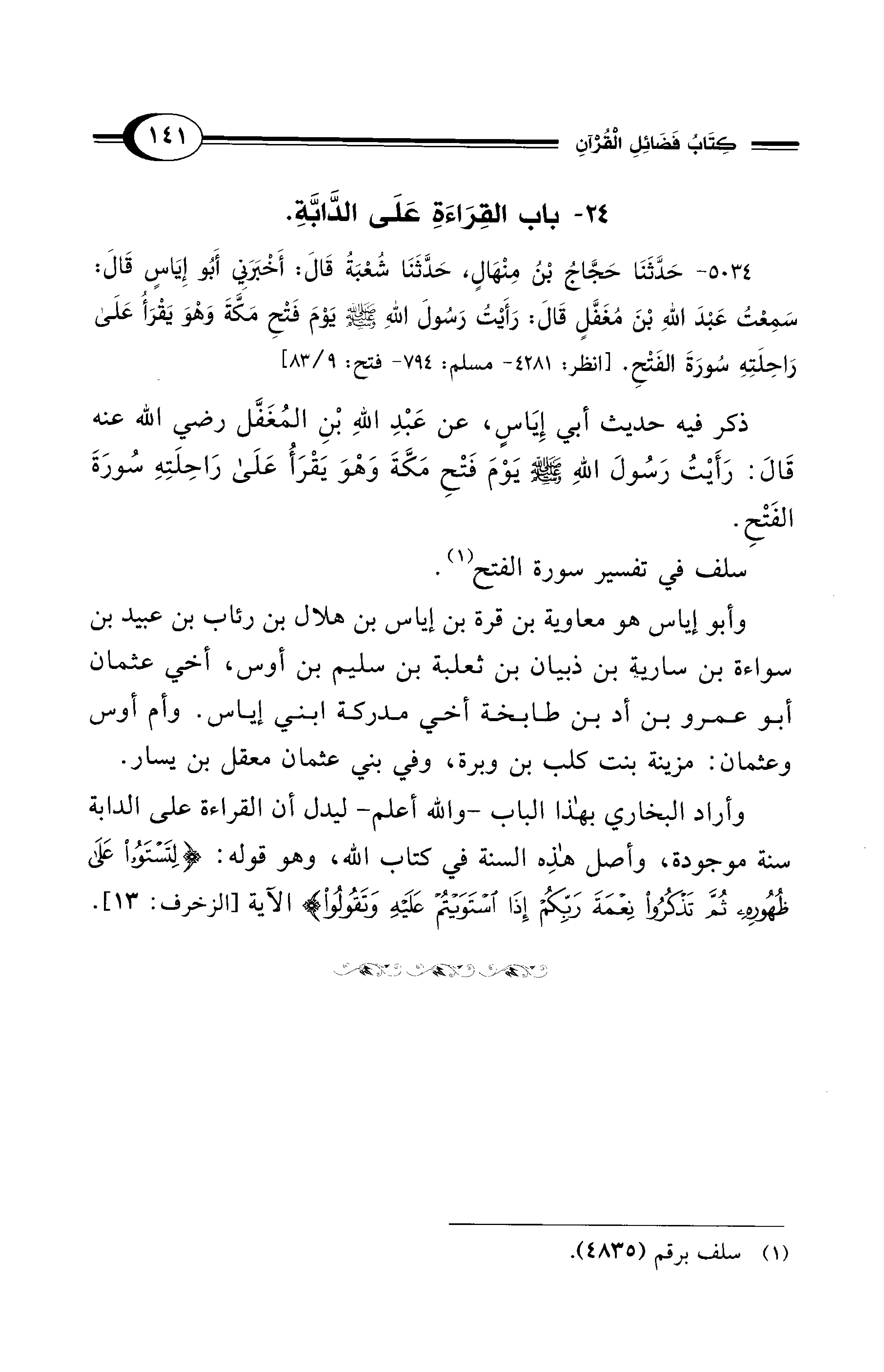 24 - باب القِرَاءَةِ عَلَى الدَّابَّةِ.