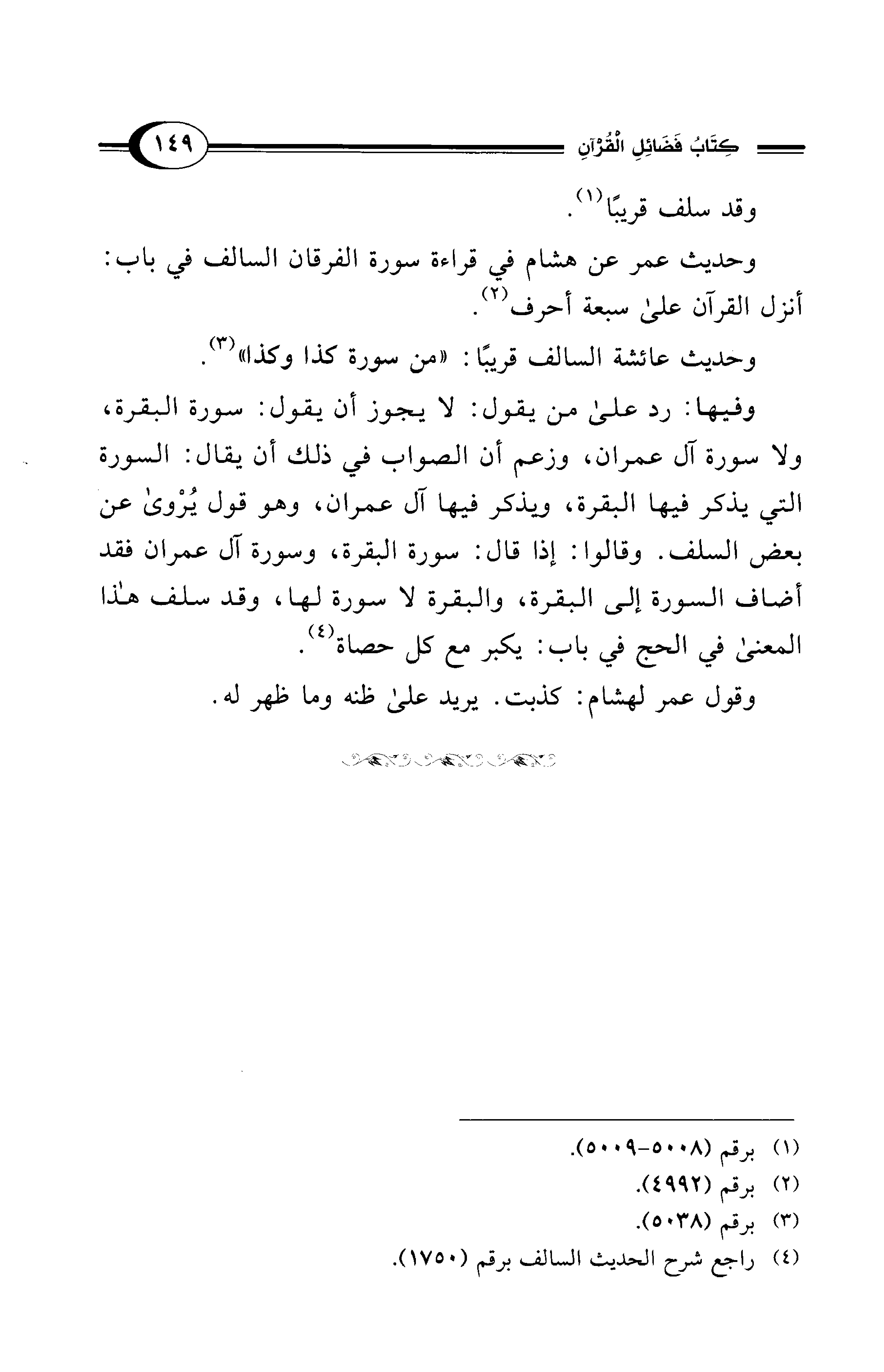 وحديث عمر عن هشام في قراءة سورة الفرقان السالف في باب: أنزل القرآن على سبعة أحرف (¬2).