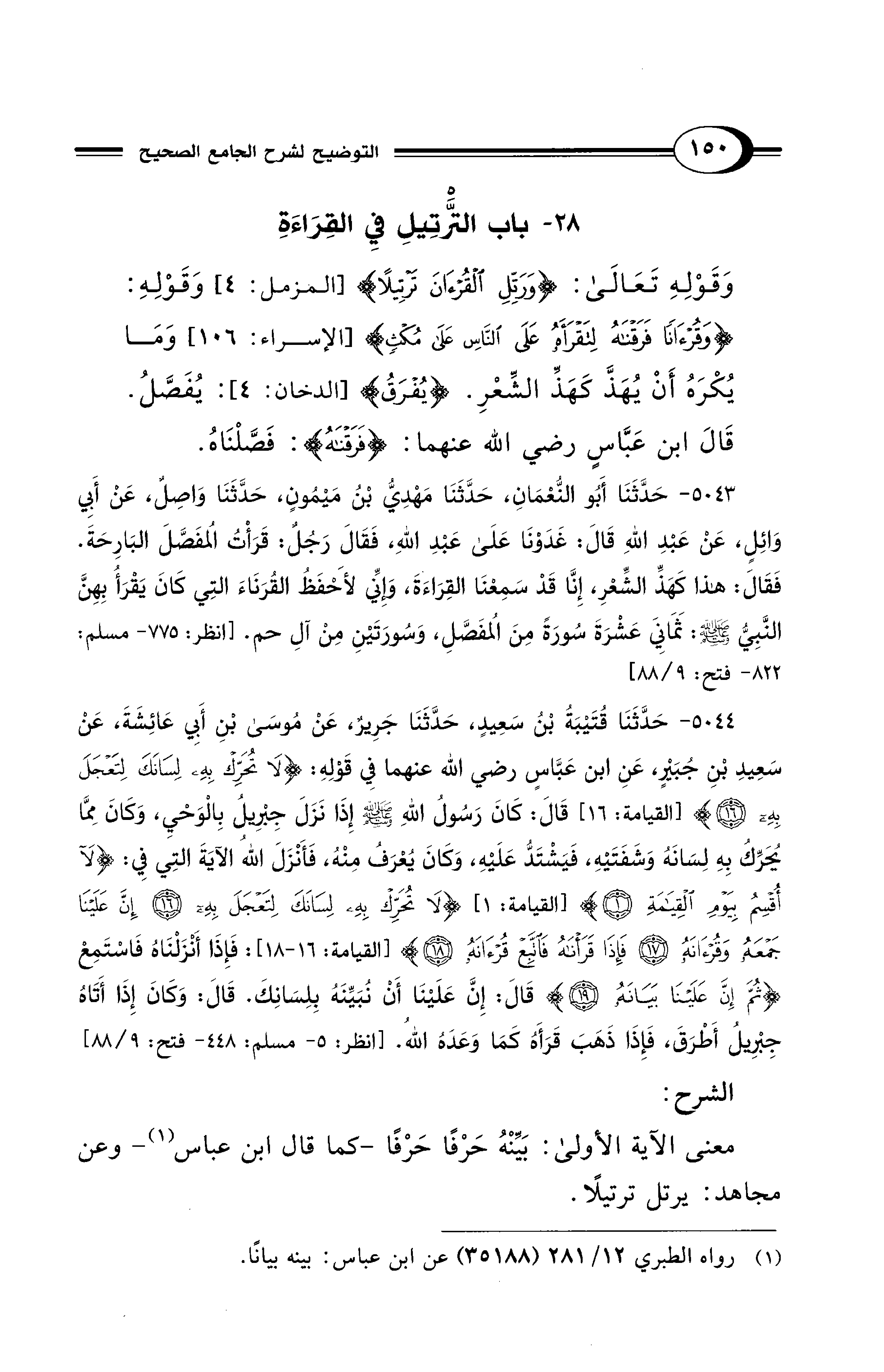 28 - باب التَّرتِيلِ فِي القِرَاءَةِ