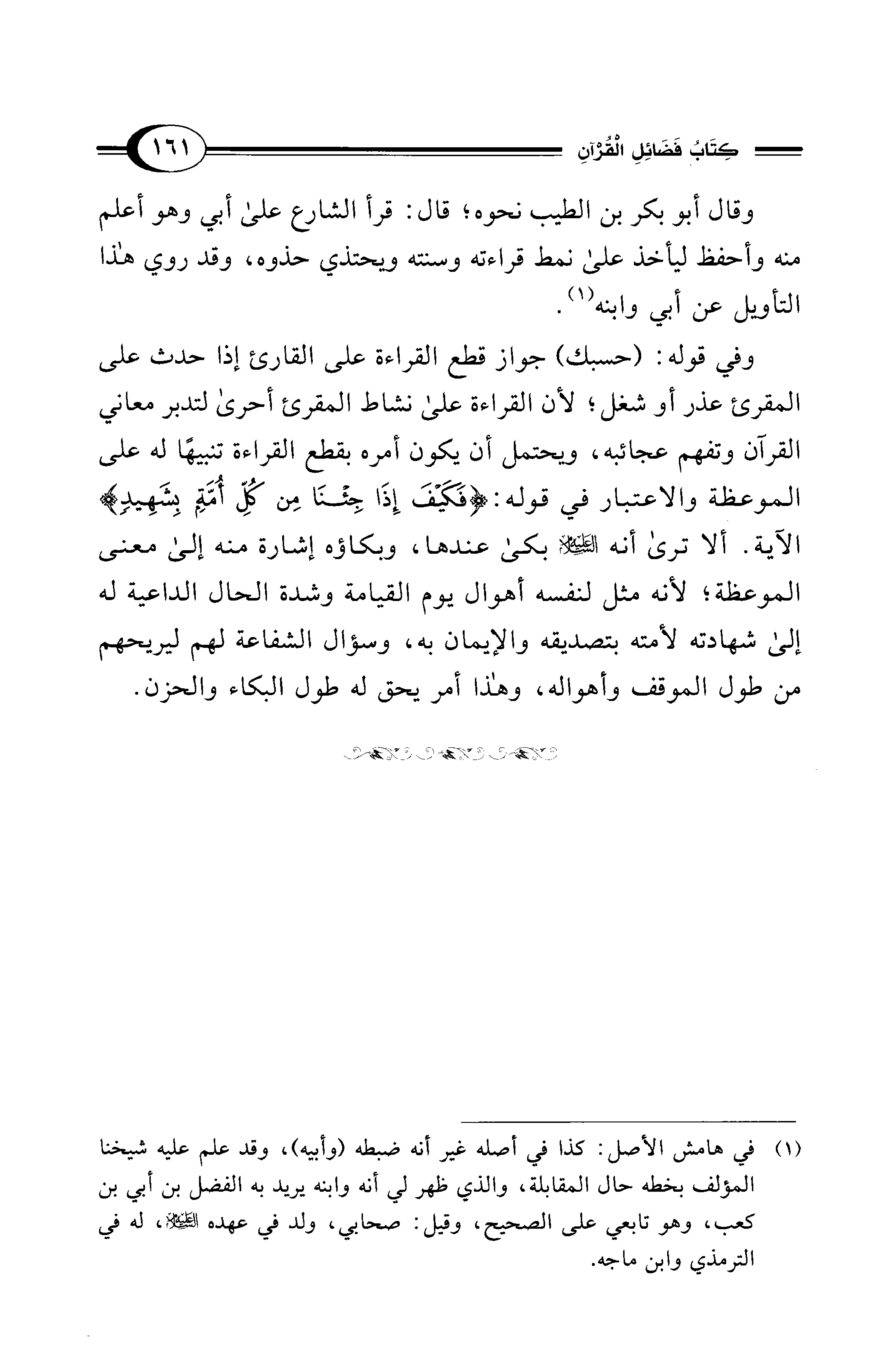 وقال أبو بكر بن الطيب نحوه؛ قال: قرأ الشارع على أبي وهو أعلم منه وأحفظ ليأخذ على نمط قراءته وسنته ويحتذي حذوه، وقد روي هذا التأويل عن أبي وابنه (¬1).
