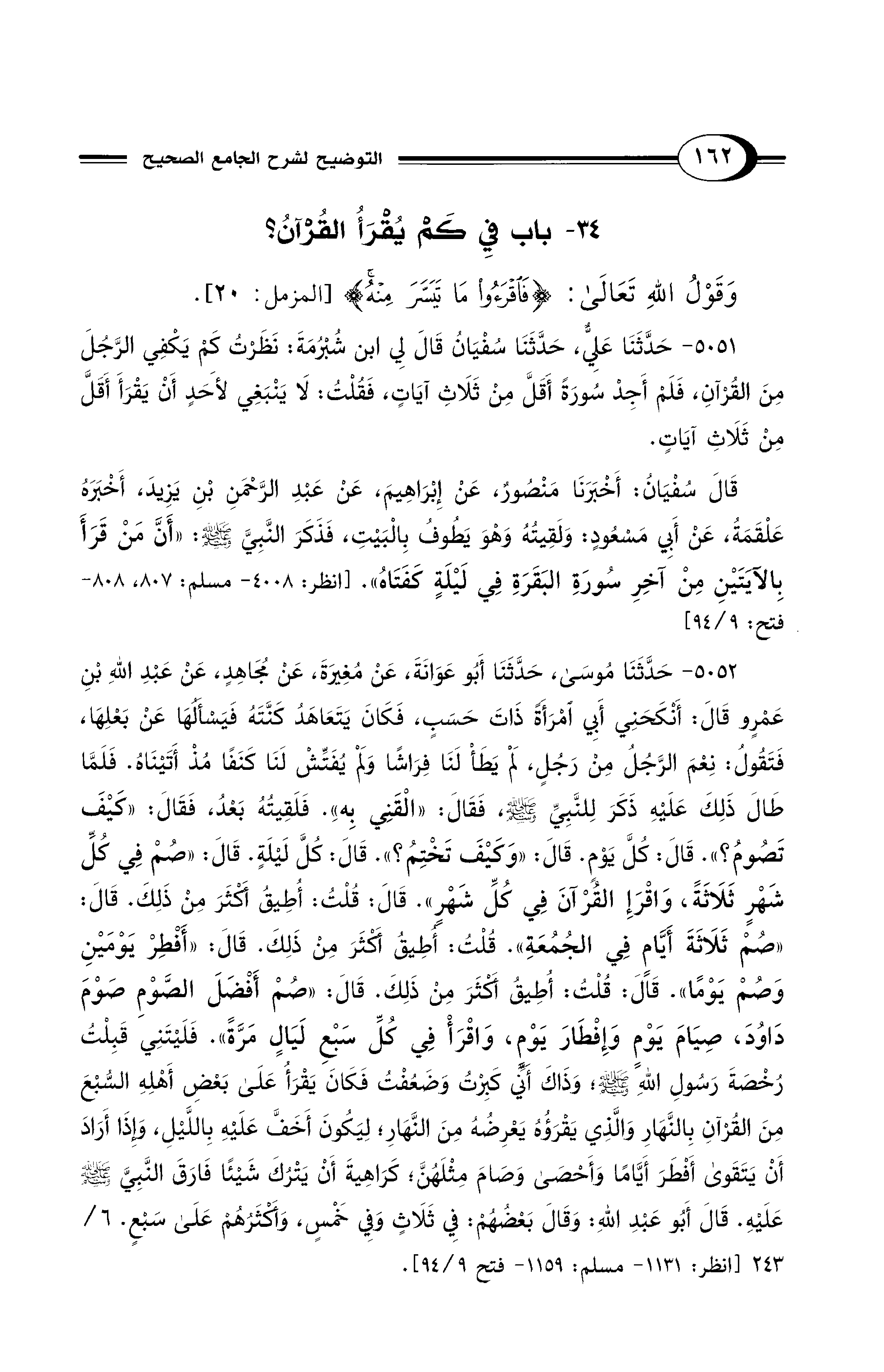 34 - باب فِي كَمْ يُقْرَأُ القُرْآنُ؟