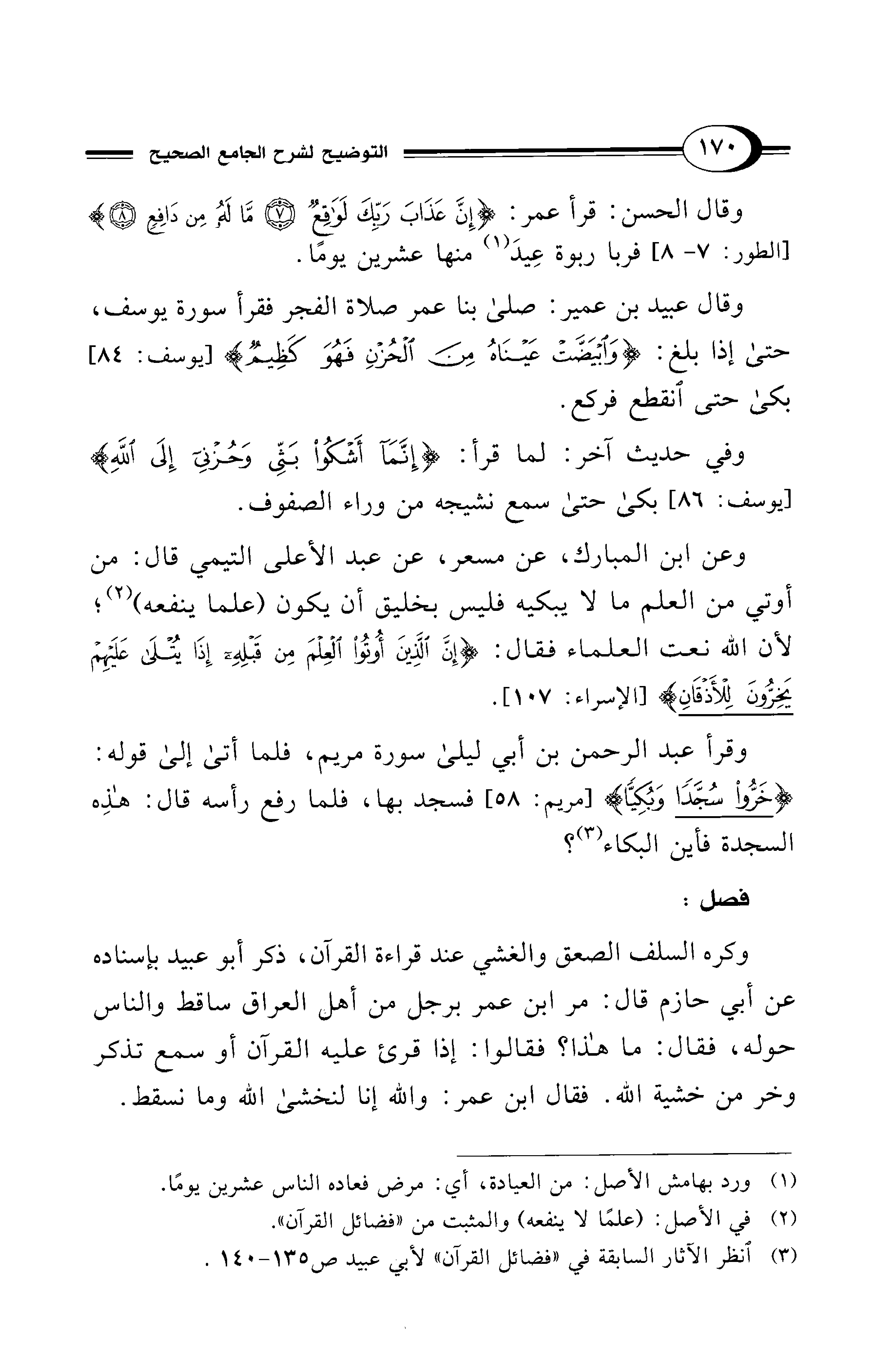 (¬3) انظر الآثار السابقة في "فضائل القرآن" لأبي عبيد ص 135 - 140.