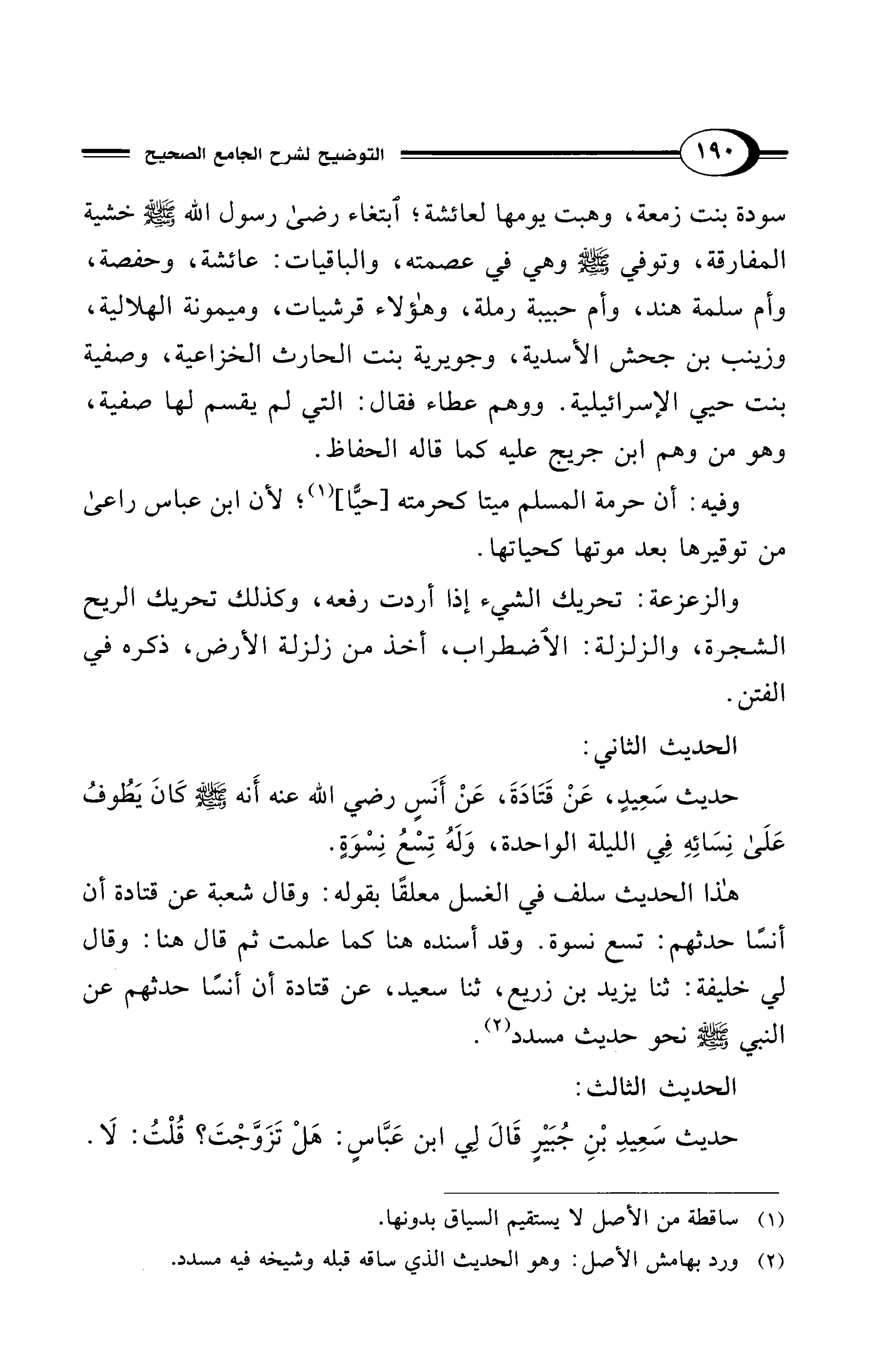حديث سَعِيدِ بْنِ جُبَيْرٍ قَالَ لِي ابن عَبَّاسٍ: هَلْ تَزَوَّجْتَ؟ قُلْتُ: لَا.